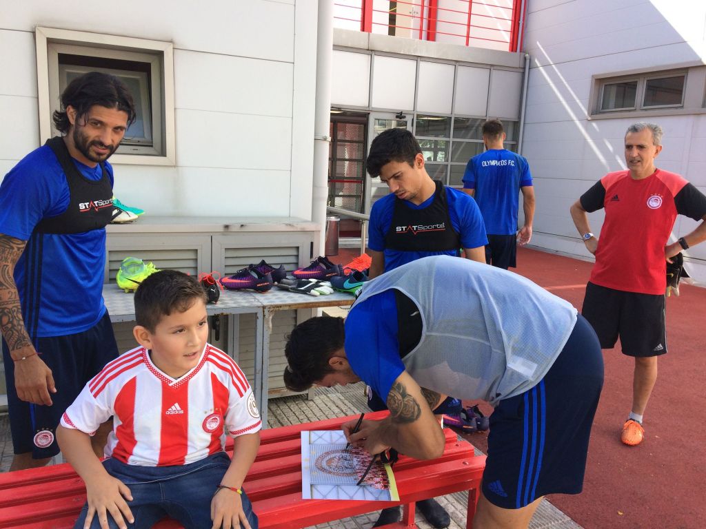 Την πύλη του Προπονητικού Κέντρου Ρέντη πέρασε την περασμένη εβδομάδα ο μικρός Κώστας προκειμένου να συναντήσει τα είδωλα του αλλά και να δει που κάνει προπόνηση η αγαπημένη του ομάδα, ο Ολυμπιακός.