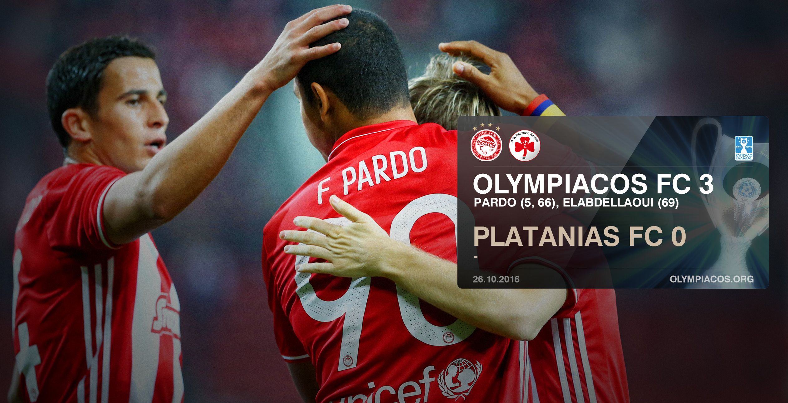 Ποδαρικό με το δεξί έκανε στο Κύπελλο Ελλάδας ο Ολυμπιακός που νίκησε εύκολα (3-0) τον Πλατανιά στο «Γ. Καραϊσκάκης» για την 1η αγωνιστική της 2ης φάσης της διοργάνωσης. Η ομάδα μας ήταν αρκετά αλλαγμένη αναφορικά με την 11άδα σε σχέση με τον πρόσφατο θρίαμβο απέναντι στον ΠΑΟΚ.