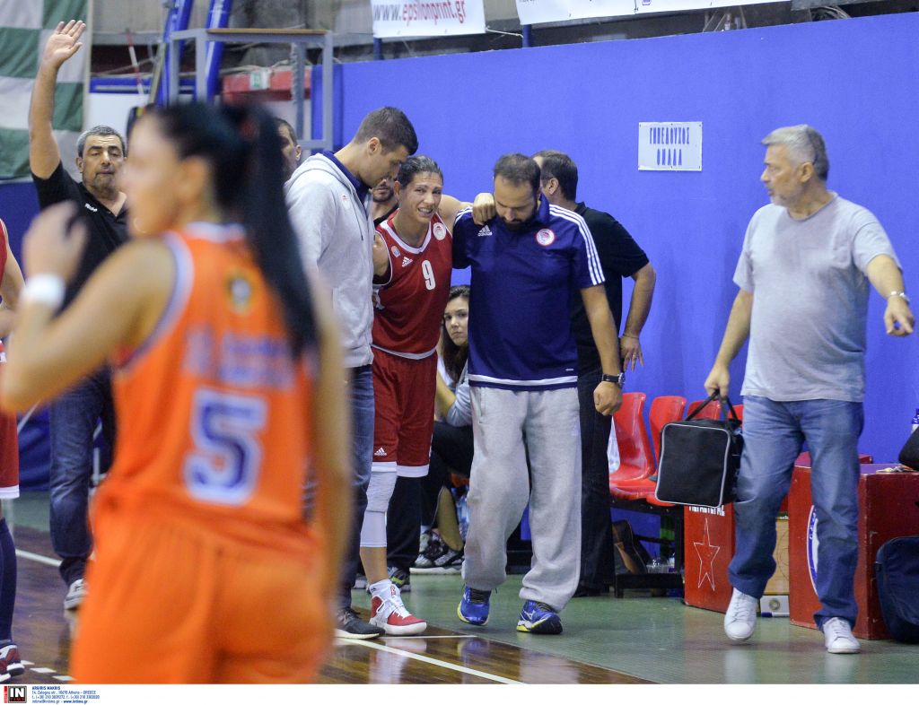 Ο Ολυμπιακός εμφανώς κουρασμένος από τα συνεχόμενα παιχνίδια σε Ελλάδα και Ευρώπη δεν ξεκίνησε τόσο δυνατά όσο μας έχει συνηθίσει, ωστόσο είχε τον έλεγχο του αγώνα και προηγήθηκε 16-19 στο πρώτο δεκάλεπτο. Το φινάλε του ημιχρόνου τον βρήκε μπροστά με 28-38 με πρωταγωνίστρια την Όλγα Χατζηνικολάου με 10 πόντους, τη Ζωή Δημητράκου με 7 και τις Κάιζερ – Μάλτση να έχουν από 6. Στο διάστημα του πρώτου δεκαλέπτου αποχώρησε λόγο τραυματισμού η Εβίνα Μάλτση αφού της γύρισε το πόδι, ωστόσο η κατάσταση της δεν φαίνεται να εμπνέει ανησυχία και αναμένετε να επανέλθει στις προπονήσεις μετά από 2-3 ημέρες.