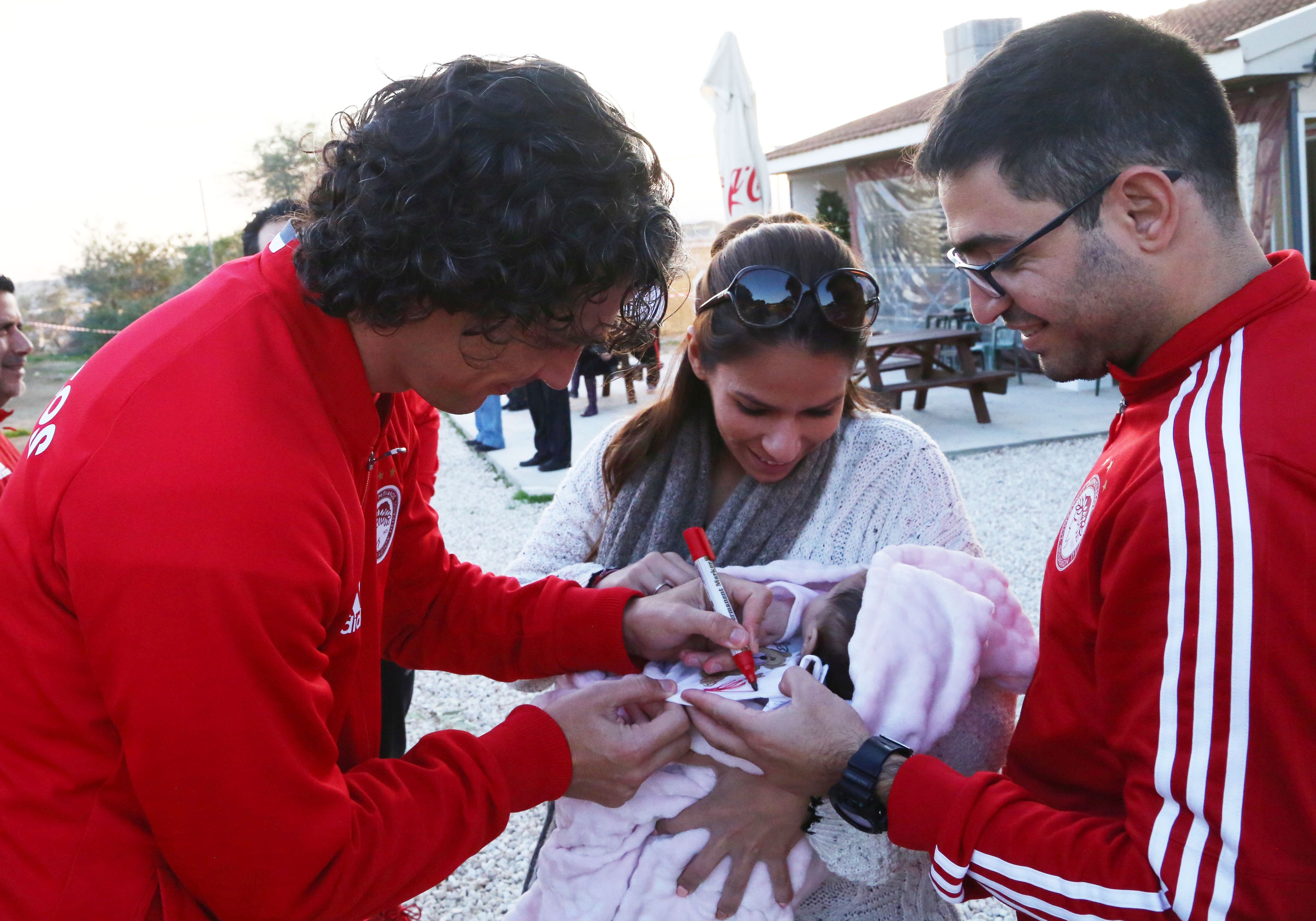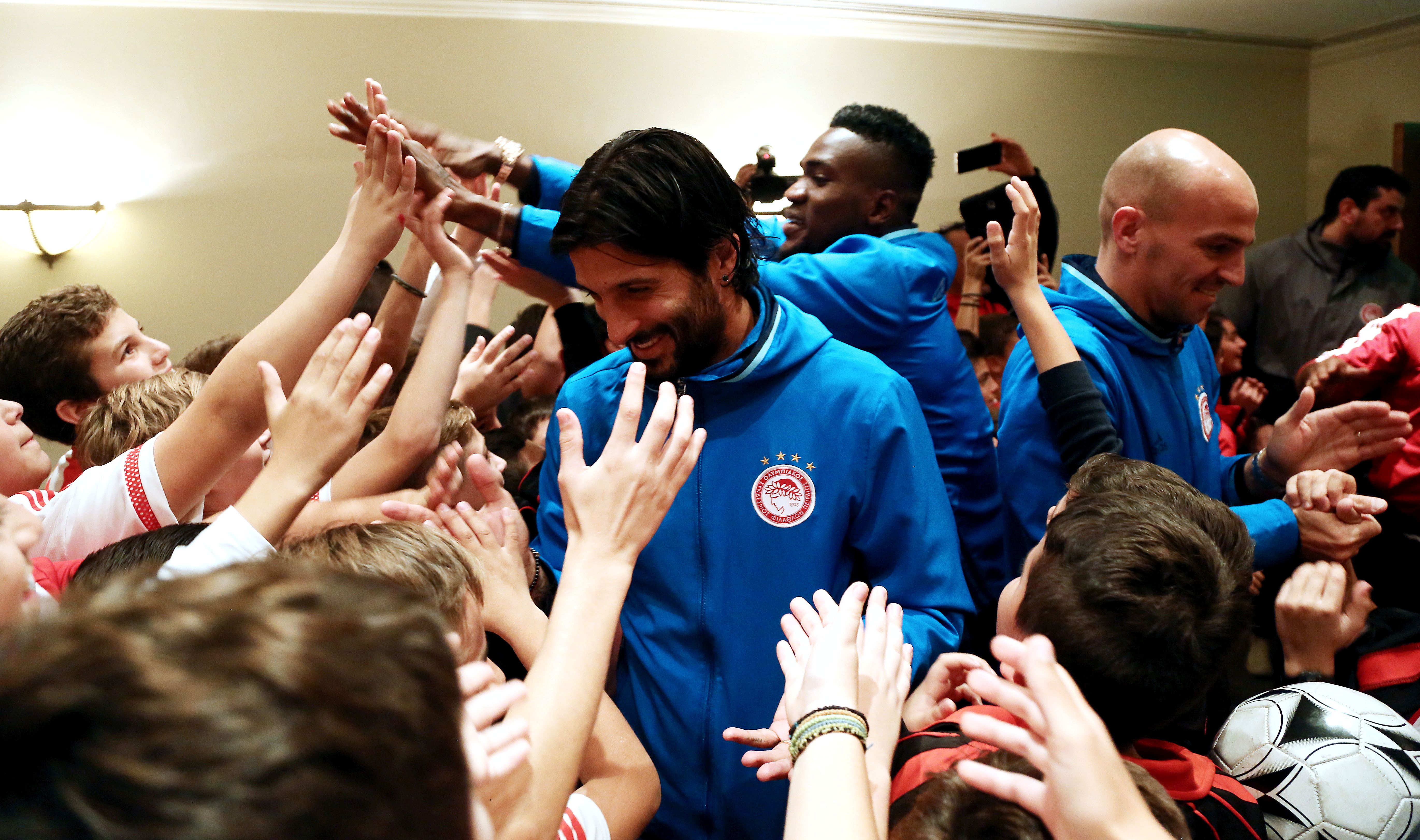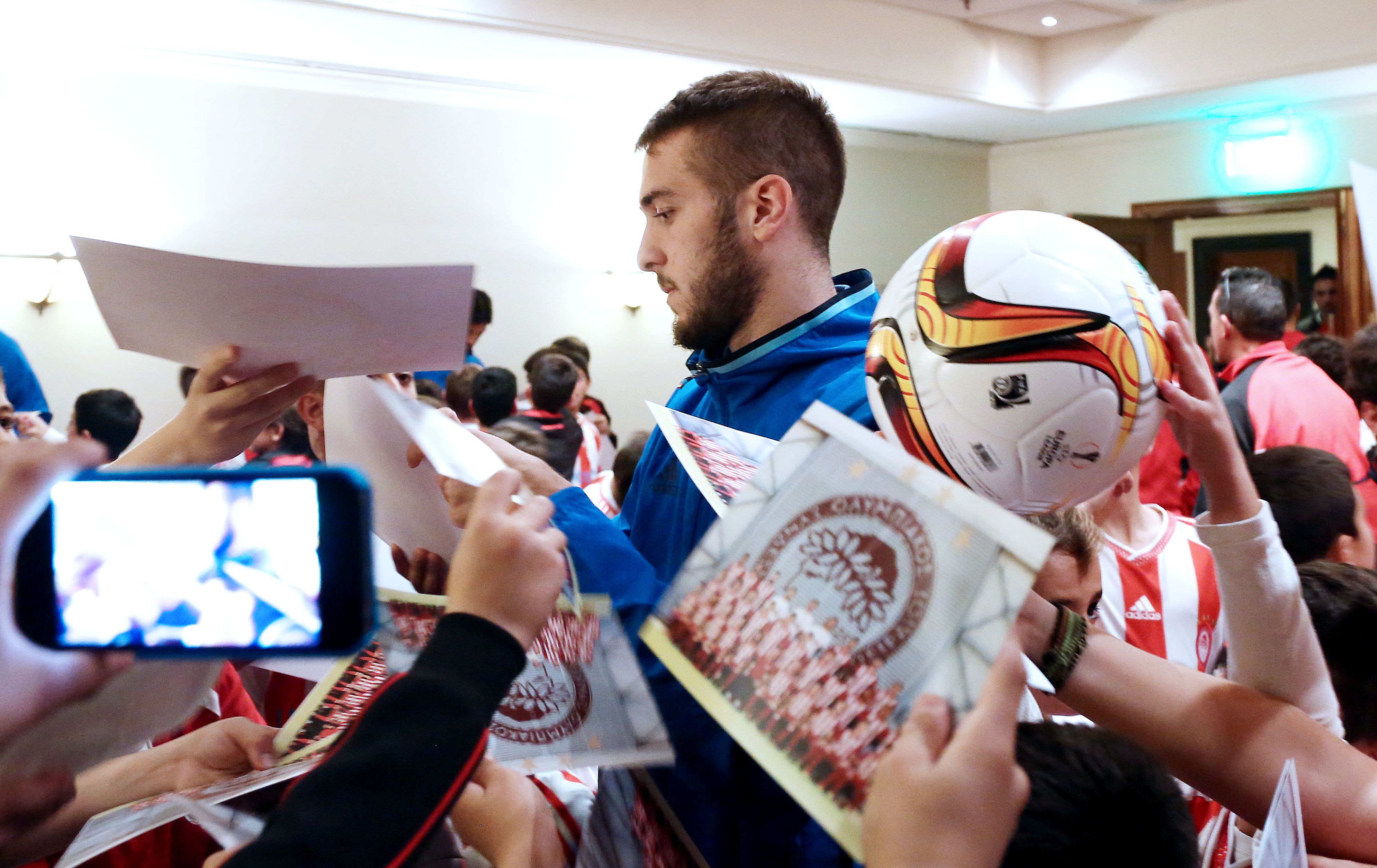 Τα παιδιά των Σχολών του Ολυμπιακού είχαν την ευκαιρία να υποδεχτούν την ομάδα κατά την άφιξη της στο αεροδρόμιο της Λάρνακας και να … εξασφαλίσουν δεκάδες αυτόγραφα! Μετά από την εγκατάσταση της ομάδας στη Λευκωσία σύσσωμο το ποδοσφαιρικό τμήμα υποδέχτηκε στο ξενοδοχείο τα παιδιά της Σχολής του Ολυμπιακού στην πρωτεύουσα της Κύπρου και να τα κάνει ευτυχισμένα.