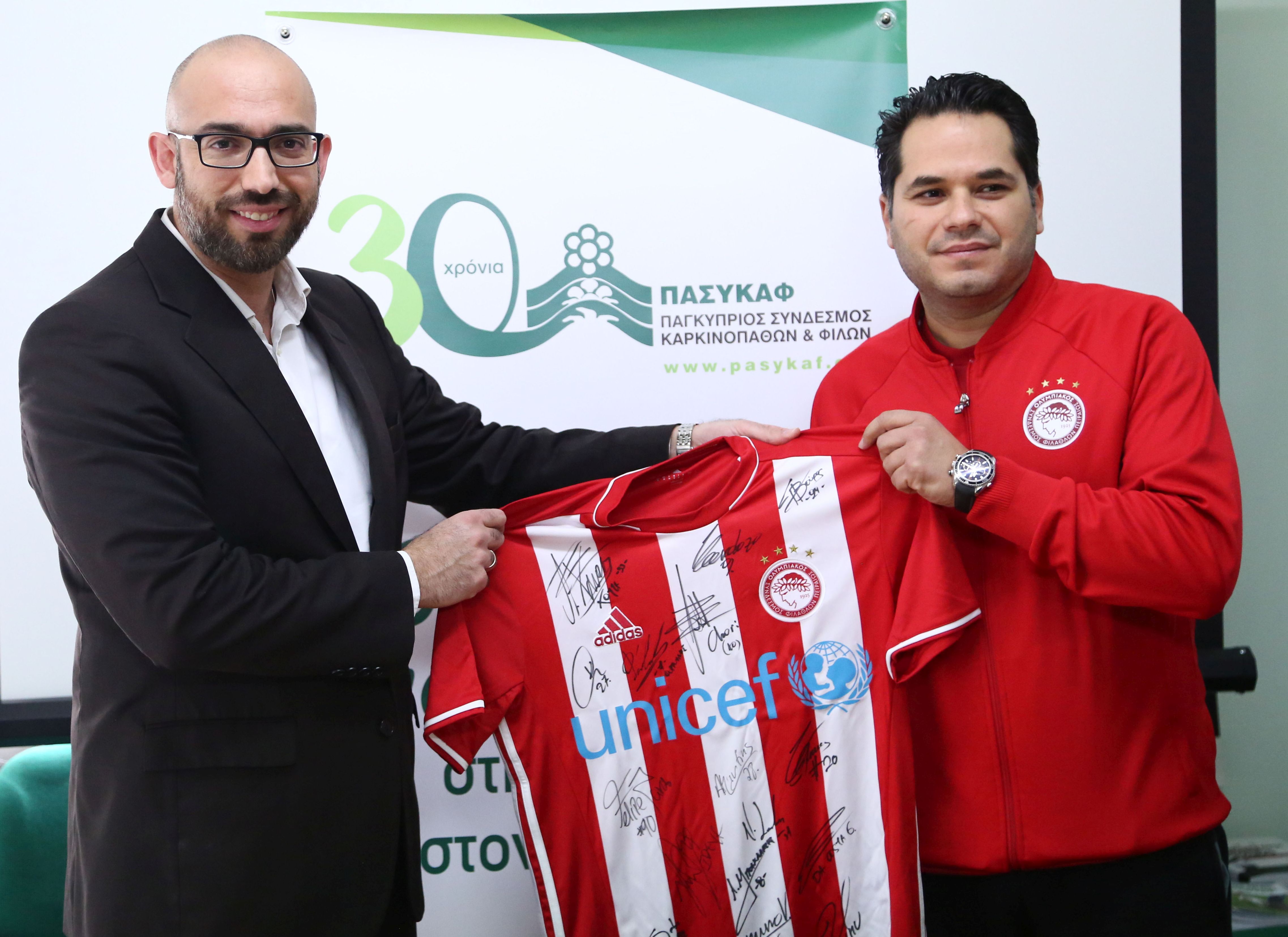 Το πρωί της Πέμπτης (8/12) αντιπροσωπεία του Ολυμπιακού αποτελούμενη από τον Διευθυντή του Δικτύου Σχολών κ. Βασίλη Νάνο, τον επικεφαλής των Σχολών Κύπρου κ. Χρίστο Κωνσταντίνο και άλλα μέλη των Σχολών Κύπρου επισκέφτηκαν τις εγκαταστάσεις του ΠΑΣΥΚΑΦ (Παγκύπριο Σύνδεσμο Καρκινοπαθών και Φίλων) για να προσφέρουν οικονομική βοήθεια της τάξεως των 3000 ευρώ εκ μέρους του Προέδρου της ΠΑΕ ΟΛΥΜΠΙΑΚΟΣ κ. Βαγγέλη Μαρινάκη.