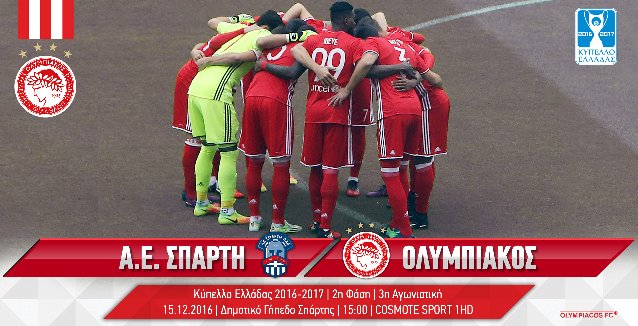 Στη Σπάρτη ολοκληρώνει σήμερα (15:00 – COSMOTE SPORT1) ο Ολυμπιακός τις υποχρεώσεις του στην 2η φάση του Κυπέλλου Ελλάδας. Η ομάδα μας, που έχει ήδη εξασφαλίσει την πρόκριση, φιλοξενείται στο Δημοτικό γήπεδο της πόλης από την τοπική ομώνυμη ομάδα για την 3η και τελευταία αγωνιστική του 2ου ομίλου.