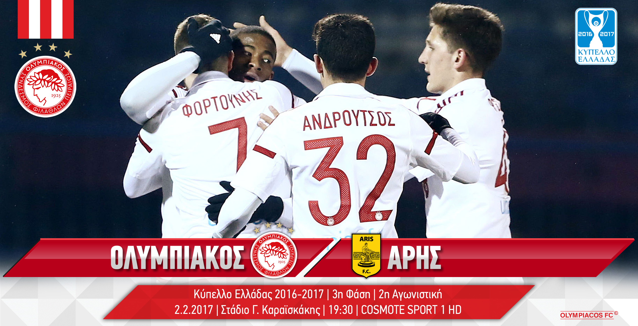 Μείνετε στοwww.olympiacos.orgκαι τα social media της ομάδας μας (Facebook,Twitter,Instagram)ώστε να διαβάσετε και να δείτε όλα όσα θα γίνουν απόψε στην Θεσσαλονίκη στον αγώνα του Θρύλου μας με τον Άρη για την φάση των “16” του Κυπέλλου Ελλάδας.