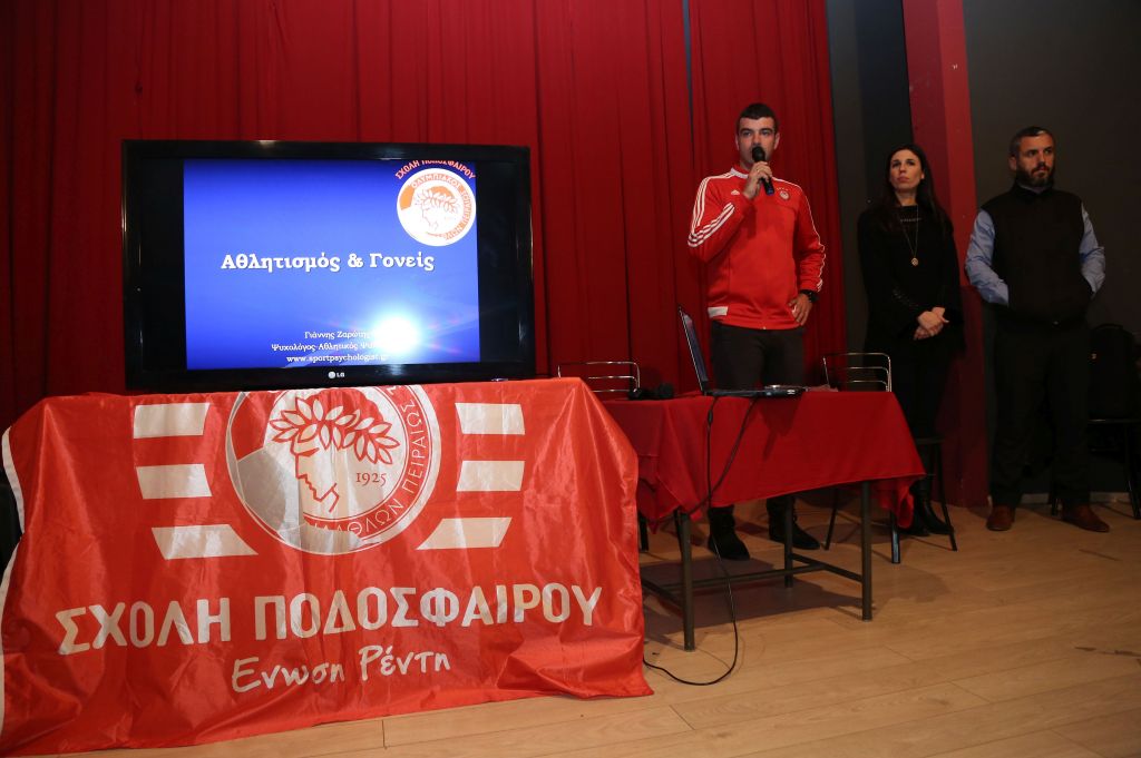 Με μεγάλη επιτυχία πραγματοποιήθηκε το απόγευμα της Παρασκευής στο Δημαρχείο Αγ. Ιωάννη Ρέντη διπλό επιμορφωτικό σεμινάριο Αθλητικής Ψυχολογίας και Διατροφής για τους γονείς και τα παιδιά της Σχολής Ένωση Ρέντη.