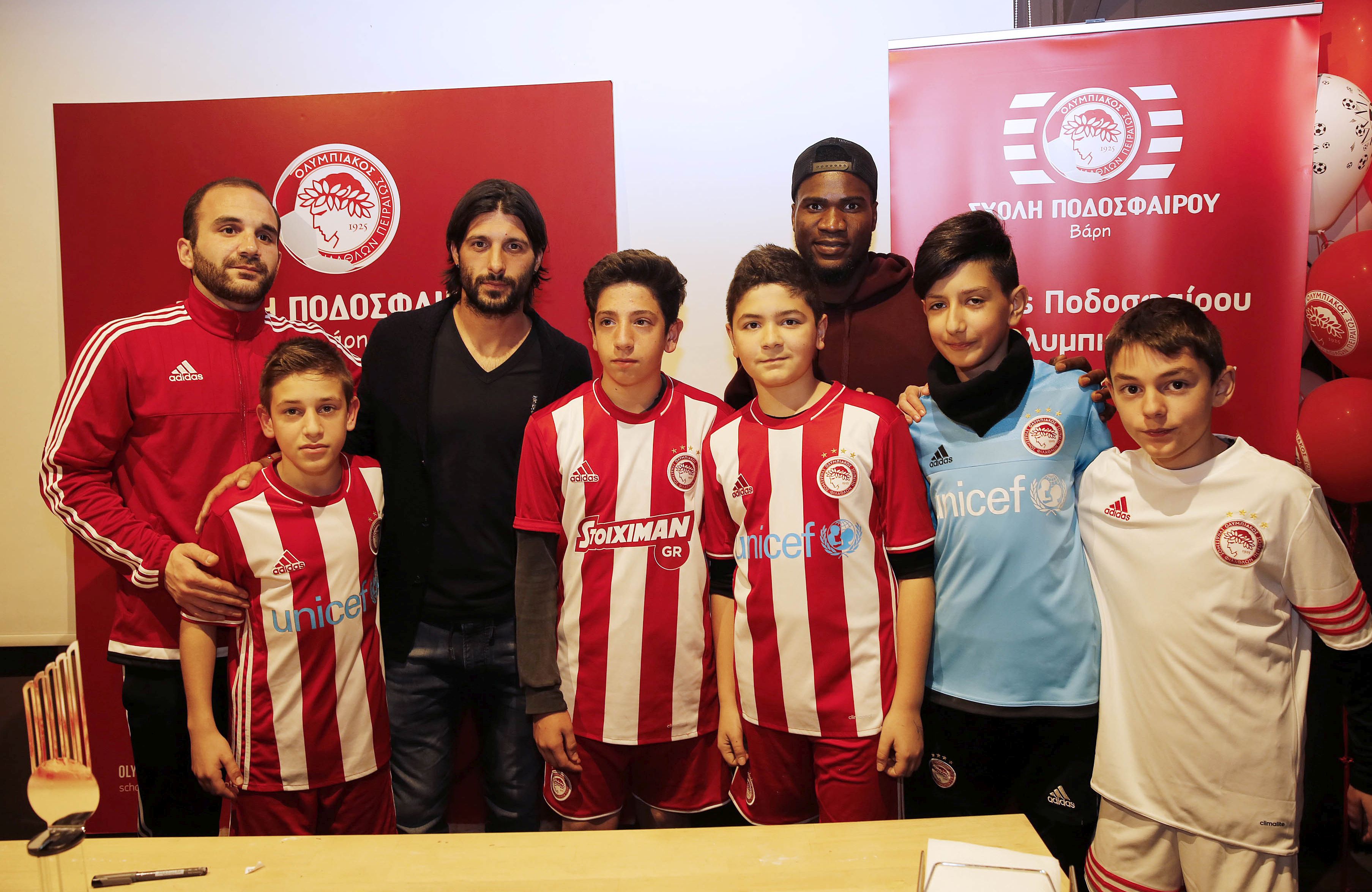 Ο κ. Αγγελάκης τίμησε τον Ντομίνγκεζ για την προσφορά του στον Ολυμπιακό αλλά και για την πολυετή υποστήριξη στη Σχολή Βάρης και εν συνεχεία οι δυο ποδοσφαιριστές έδωσαν τα δώρα στα παιδιά που βρήκαν τα φλουριά και υπέγραψαν δεκάδες αυτόγραφα.