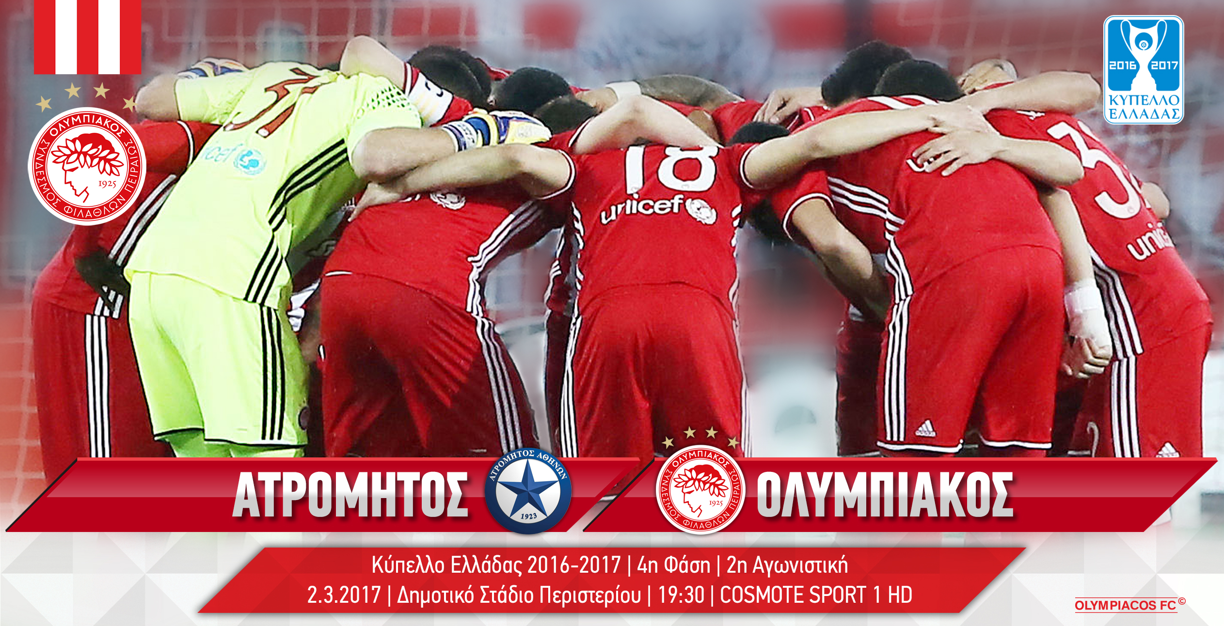 Στροφή και πάλι στο Κύπελλο Ελλάδας για τον Ολυμπιακό μας, ο οποίος αντιμετωπίζει απόψε (19:30, COSMOTE SPORT 1HD) στο Περιστέρι τον Ατρόμητο, στον αγώνα ρεβάνς της φάση των «8» της διοργάνωσης. Ο Θρύλος ήταν καλύτερος στο πρώτο ματς στο «Γ. Καραϊσκάκης» αλλά δεν κατάφερε να πετύχει ένα γκολ το οποίο θα του άνοιγε το… δρόμο της πρόκρισης, κάτι που θέλει να πετύχει σήμερα παίρνοντας παράλληλα και την πρόκριση στα ημιτελικά.