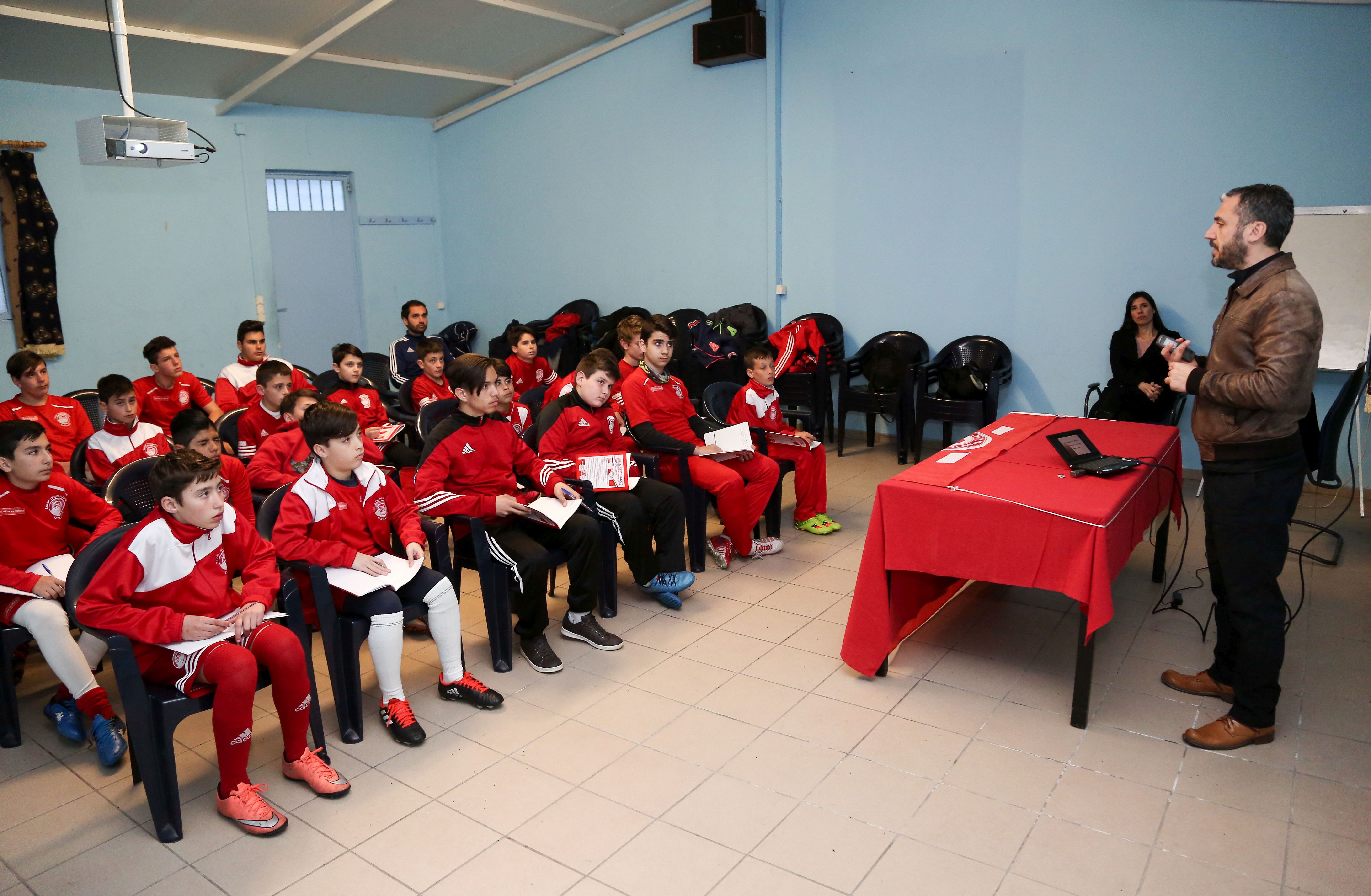 Οι ποδοσφαιριστές κάθισαν και το… απόγευμα στα θρανία, άνοιξαν τα … αυτιά και τα τετράδια τους και άρχισαν ν’ ακούν και να σημειώνουν τα πολύ σημαντικά πράγματα που είπε αρχικά ο Αθλητικός Ψυχολόγος της Ακαδημίας της ΠΑΕ Ολυμπιακός κ. Γιάννης Ζαρώτης και εν συνεχεία η συνεργάτης του Δικτύου Σχολών Διατροφολόγος κα Διονυσία Αργυροπούλου.