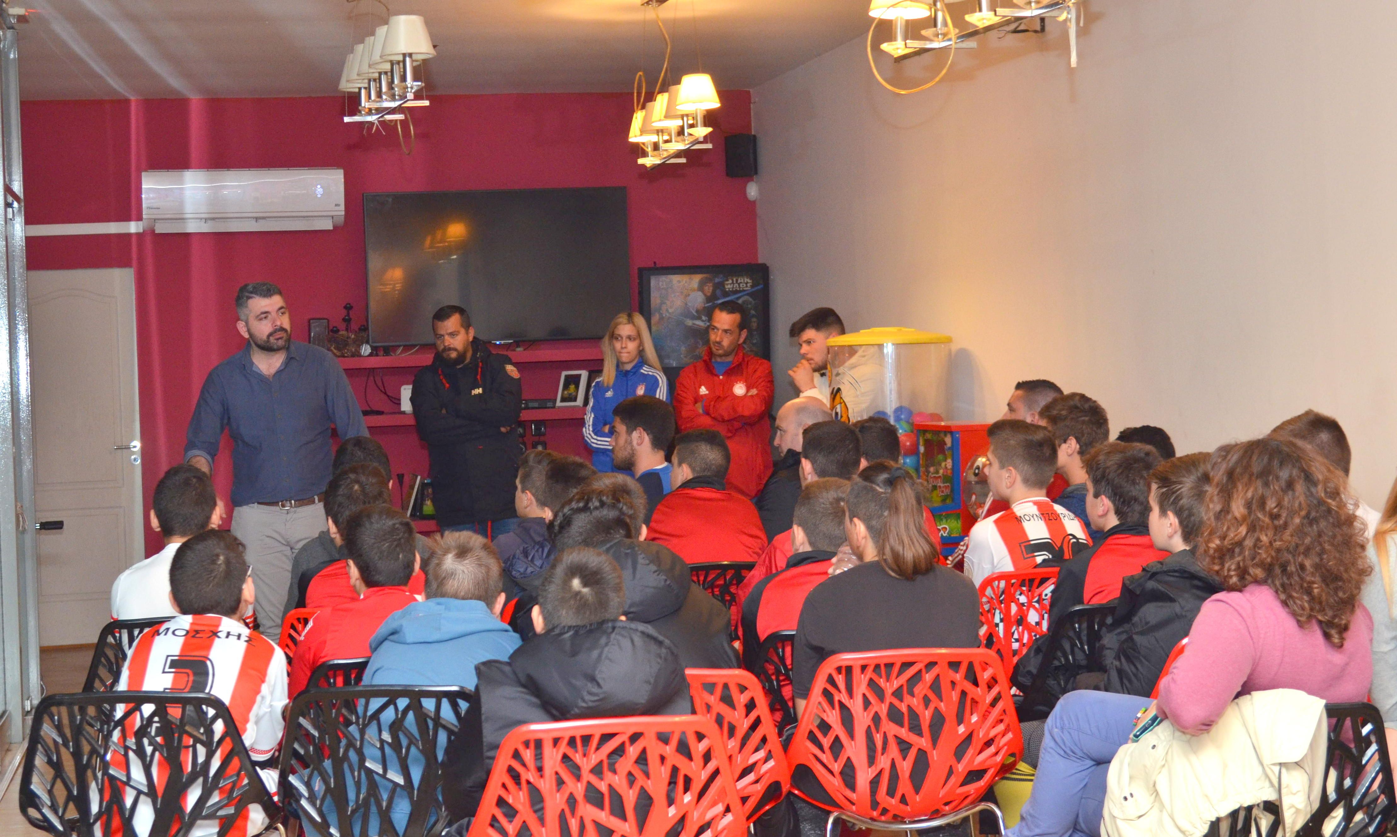 Οι ποδοσφαιριστές από το παιδικό και το παμπαιδικό τμήμα της Σχολής μαζί με τους γονείς τους είχαν την ευκαιρία ν’ ακούσουν τον ψυχολόγο κ. Στέφανο Αλεβίζο, ο οποίος είναι στον τομέα ενημέρωσης στο “Χαμόγελο του Παιδιού”, να τους δίνει παραδείγματα παιδιών που υπέστησαν ψυχολογική βία στο σχολείο αλλά και μέσα στο σπίτι τους.