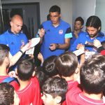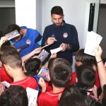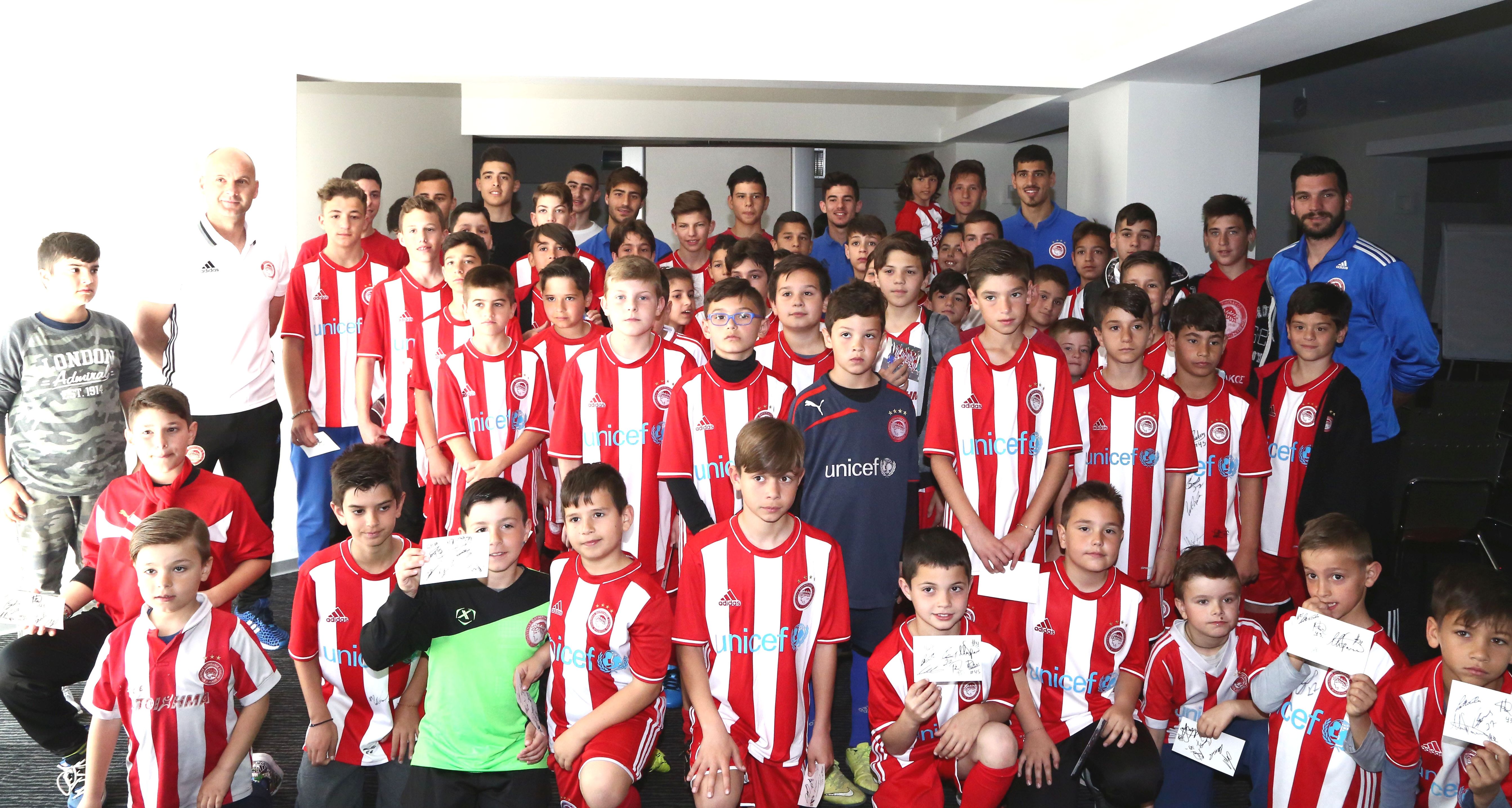Τα παιδιά της Σχολής που συνοδευόνταν από τον επικεφαλής κ. Χρήστου αλλά και τους προπονητές έδωσαν ανθοδέσμες στους ποδοσφαιριστές και εν συνεχεία είχαν την ευκαιρία να δουν από κοντά τους Πρωταθλητές και να πάρουν αυτόγραφα από όλους! Τα παιδιά άκουσαν με προσοχή τα λόγια των ποδοσφαιριστών του Ολυμπιακού και έδειξαν ιδιαίτερη αδυναμία στον Ντομίνγκεζ αλλά και στους τέσσερις που προέρχονται από την ομάδα Νέων (Ρέτσος, Μανθάτης, Ανδρούτσος, Νικολάου). Οι τελευταίοι είναι και το … ζωντανό παράδειγμα γι’ αυτούς αφού ξεκίνησαν από τις Σχολές και την Ακαδημία και έφτασαν στην μεγάλη ομάδα.