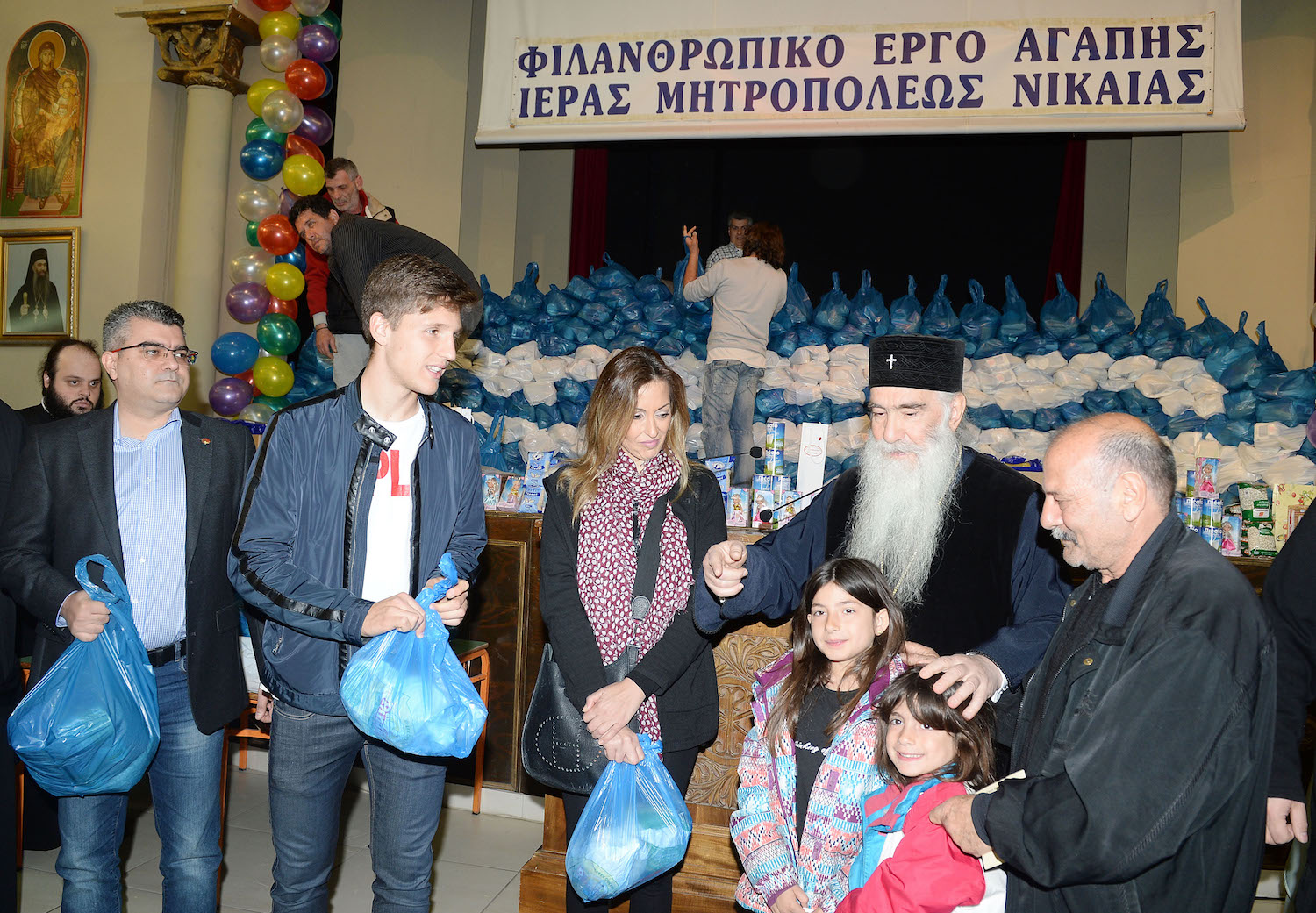 Ο Παναγιώτης Ρέτσος, καθώς και ο Διευθυντής Εταιρικής Κοινωνικής Ευθύνης της ΠΑΕ Ολυμπιακός, κ. Δομένικος Μασούλας, επισκέφθηκαν το πρωί της Μεγάλης Δευτέρας το Πνευματικό Κέντρο Νικαίας, εκεί όπου τους υποδέχθηκε ο Σεβασμιότατος Μητροπολίτης κ.κ. Αλέξιος. Περισσότεροι από 2.000 άνθρωποι ήταν σήμερα -μόνο- εκεί, προκειμένου να παραλάβουν αγαθά, τα οποία διανέμει η Ιερά Μητρόπολη Νικαίας, με τη βοήθεια της ΠΑΕ Ολυμπιακός, η οποία ενισχύει διαρκώς το Φιλανθρωπικό Έργο Αγάπη Ιεράς Μητροπόλεως Νικαίας.