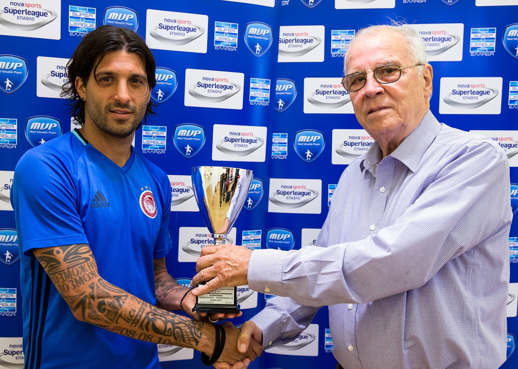 Για το που αφιερώνει το βραβείο: «Όπως πάντα λέω στους φιλάθλους του Ολυμπιακού, στην ομάδα μας, στους συμπαίκτες μου και στην οικογένεια μου, που με υποστηρίζουν κάθε μέρα».