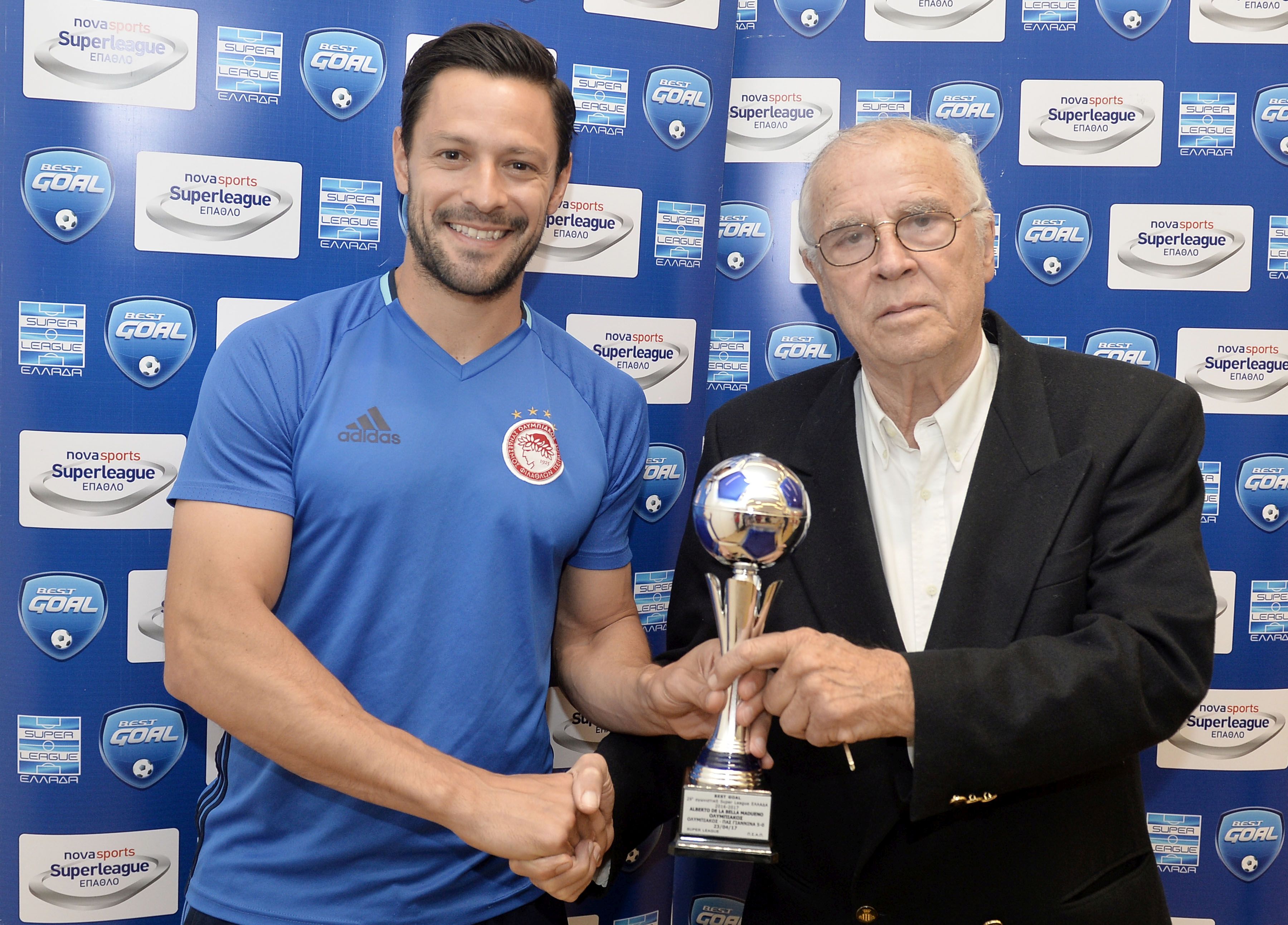 Το βραβείο του παρέδωσε ο Αντιπρόεδρος της ΠΑΕ, κ. Σάββας Θεοδωρίδης, ενώ μιλώντας στην κάμερα της ΝOVA, ο άσος του Ολυμπιακού τόνισε: «Είναι ένα ατομικό βραβείο για το γκολ που πέτυχα. Πιστεύω πως αυτό το βραβείο ανήκει σε όλους. Όσοι βοήθησαν για να σημειωθεί αυτό το γκολ. Όλα τα παιδιά που άγγιξαν την μπάλα και προσπάθησαν για να μπει αυτό το γκολ. Γενικότερα είναι ένα βραβείο που το λαμβάνω εγώ, αλλά ανήκει σε όλη την ομάδα», τόνισε και συνέχισε: