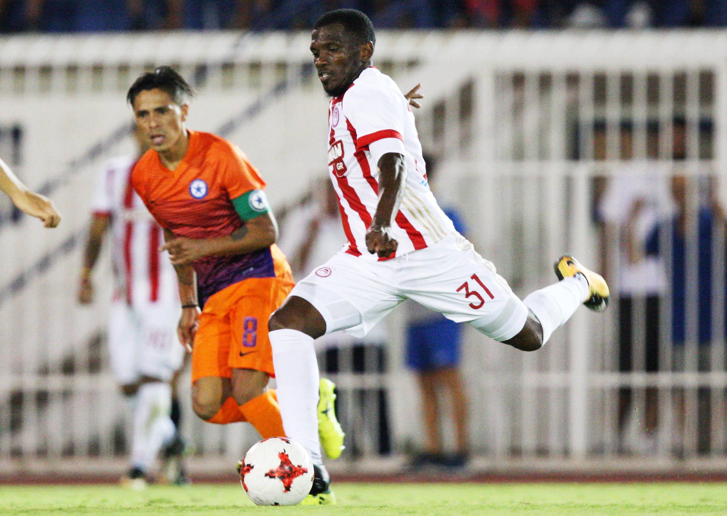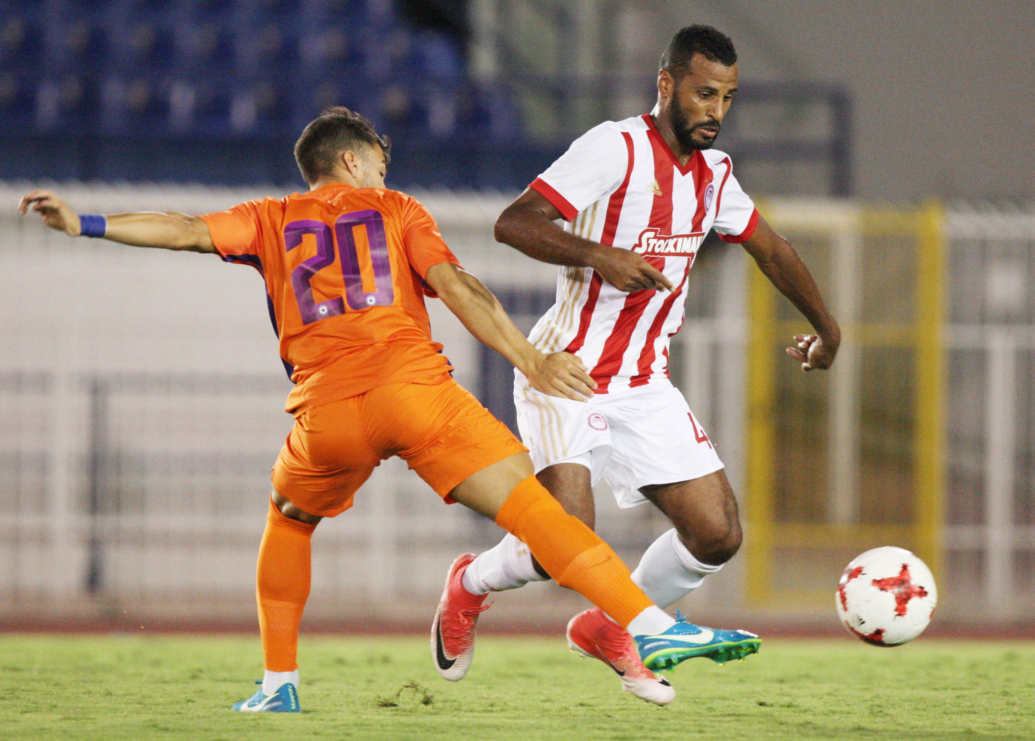 Ο Μπέσνικ Χάσι παρέταξε τον Ολυμπιακό με διάταξη 4-2-3-1. Ο Καπίνο ήταν στο τέρμα. Στην άμυνα, από δεξιά προς αριστερά ήταν οι Ελαμπντελαουί, Ρέτσος, Βούκοβιτς και Μίλιτς. Πέραν του Κροάτη μπακ, ντεμπούτο με τη φανέλα του Θρύλου μας έκανε και ο Γκιγιόμ Ζιλέ, ο οποίος ήταν δίπλα στον Ρομαό, στον άξονα. Μπροστά τους, ως δεκάρι ο Φορτούνης, αριστερά στην πτέρυγα ήταν ο Μάριν, δεξιά ο Καρσελά και στην κορυφή της επίθεσης ο Εμενίκε. Το ματς άρχισε με πολύ κακές προϋποθέσεις, για την ομάδα μας. Σε μία προσπάθεια, αμέσως μετά το 15’, ο Νιγηριανός στράικερ χτύπησε και δεν κατέστη εφικτό να συνεχίσει. Άφησε άμεσα την θέση του στην ενδεκάδα και στο γήπεδο πέρασε ο Μπεν.