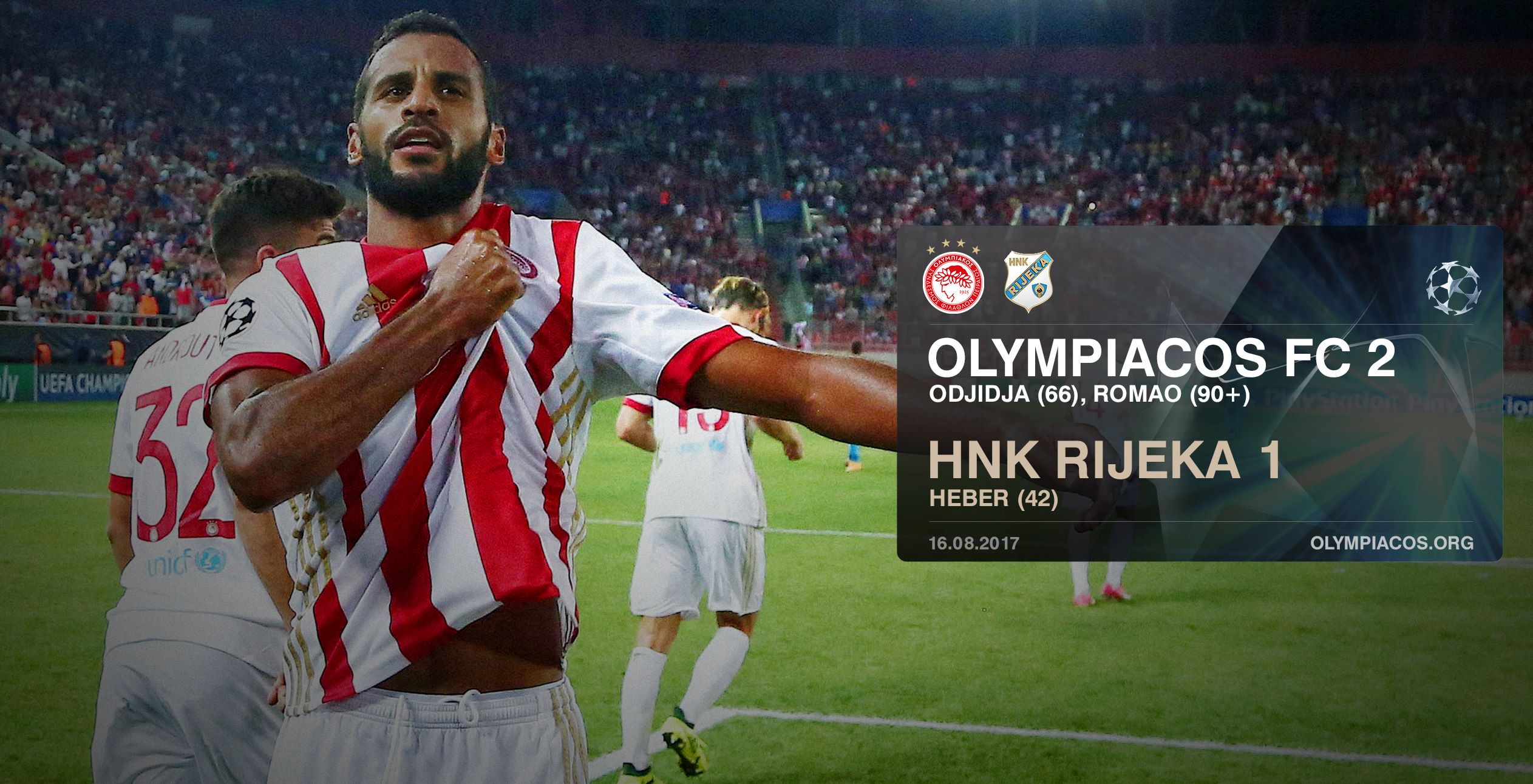 Ο Ολυμπιακός επικράτησε με 2-1 της Ριέκα και βρίσκεται 90 λεπτά μακριά από την πρόκριση στους ομίλους του UEFA Champions League.