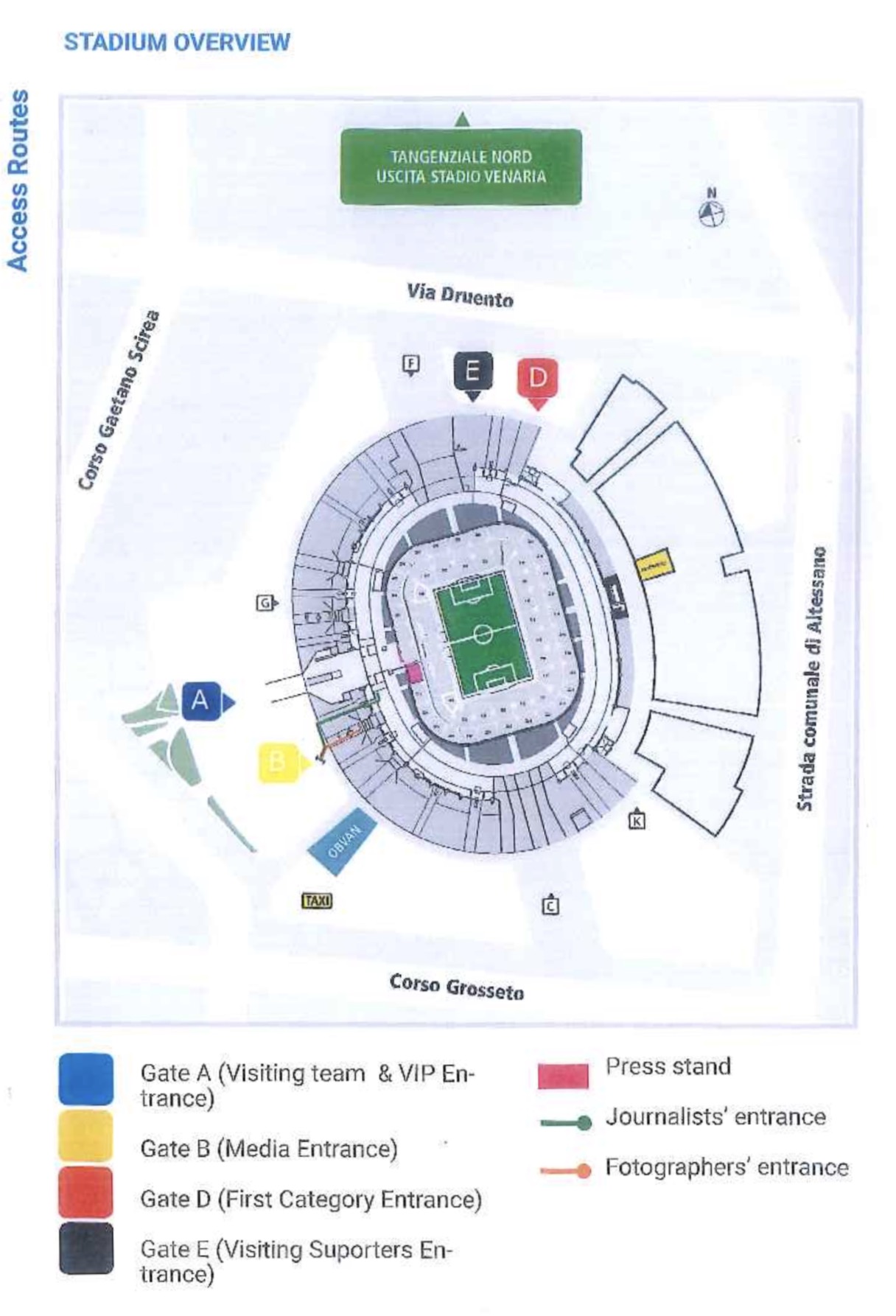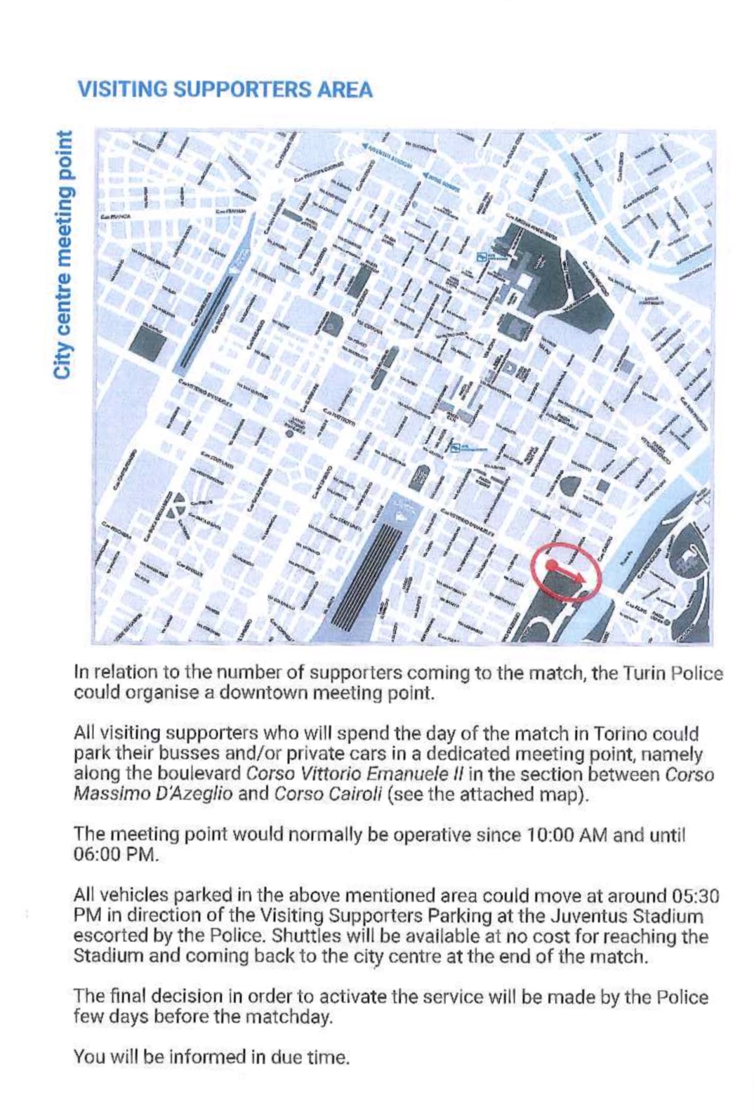 α) Υπάρχουν πολύ αυστηρά μέτρα ασφαλείας, σε ολόκληρη την πόλη, ενώ το ίδιο θα ισχύει και στο γήπεδο, λόγω της συνόδου κορυφής, η οποία λαμβάνει χώρα στο Τορίνο, αυτές τις ημέρες. Θα πρέπει όλοι οι φίλαθλοι να είναι εφοδιασμένοι με τα απαραίτητα ταξιδιωτικά έγγραφα, το εισιτήριο -με το οποίο θα γίνεται ταυτοποίηση, αλλά και να είναι υπομονετικοί στους εξονυχιστικούς ελέγχους, οι οποίοι θα γίνονται, προκειμένου να τους επιτραπεί να προσεγγίσουν το γήπεδο.