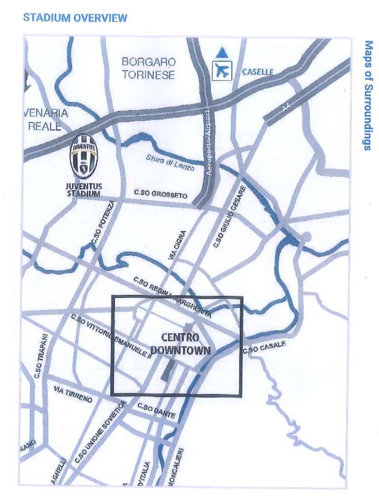 β) Ειδικά πούλμαν θα μεταφέρουν τους φιλάθλους του Ολυμπιακού, από το κέντρο της πόλης στο γήπεδο και αντιστρόφως (μετά τη λήξη του αγώνα). Τα λεωφορεία αυτά θα βρίσκονται στο κέντρο του Τορίνο και στο σημείο που μπορείτε να δείτε στην πρώτη και στη δεύτερη φωτογραφία, από τις 18:00. Μετά το τέλος του αγώνα θα τους επαναφέρουν στο ίδιο σημείο. Στην τρίτη φωτογραφία μπορείτε να δείτε το σημείο, από το οποίο ο κόσμος της ομάδας μας θα εισέλθει στο γήπεδο. Οι πόρτες του Allianz (Juventus) Stadium, ανοίγουν στις 18:45 τοπική ώρα.