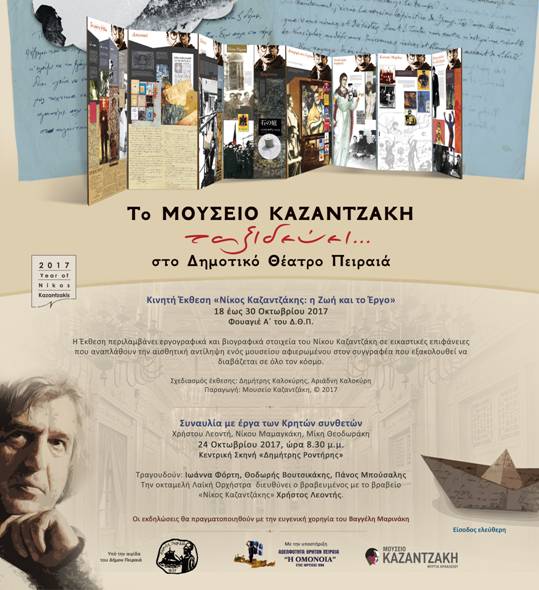 Ο κ. Βαγγέλης Μαρινάκης χορηγεί και την Έκθεση, τα εγκαίνια της οποίας έγιναν χθες Τρίτη 24/10/2017 και μέχρι τις 30 του ιδίου μήνα, το κοινό θα έχει την ευκαιρία να δει από κοντά εργογραφικά και βιογραφικά έργα του Νίκου Καζαντζάκη, σε εικαστικές επιφάνειες, που αναπλάθουν την αισθητική αντίληψη ενός μουσείου, αφιερωμένου στον συγγραφέα που εξακολουθεί να διαβάζεται σε όλο τον κόσμο! Η κινητή Έκθεση βρίσκεται από τις 18 του μήνα στο φουαγέ Α’ του ΔΘΠ και το βράδυ της Τρίτης πραγματοποιήθηκε εκεί εκδήλωση και συναυλία, στην καρδιά του Πειραιά!