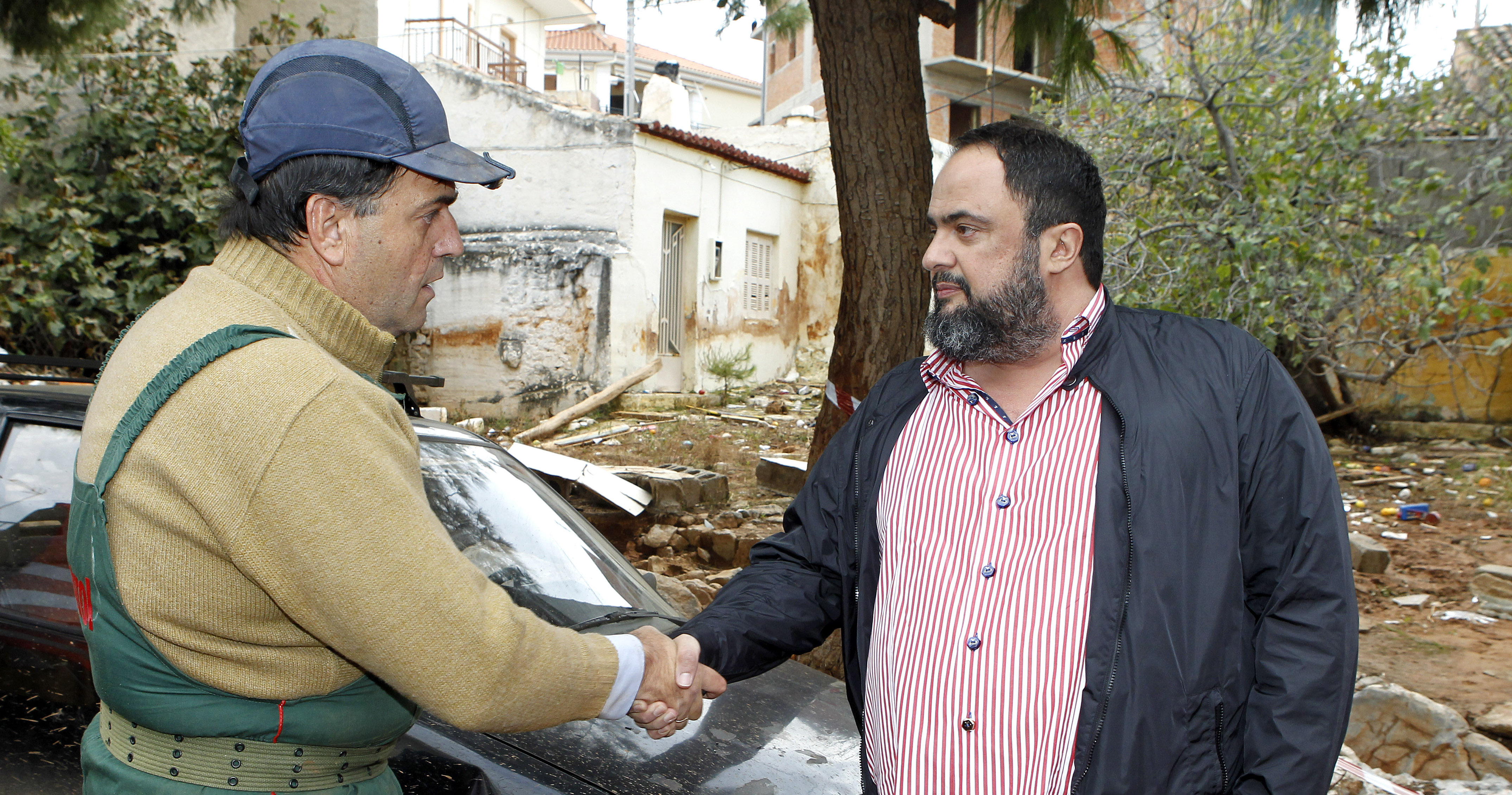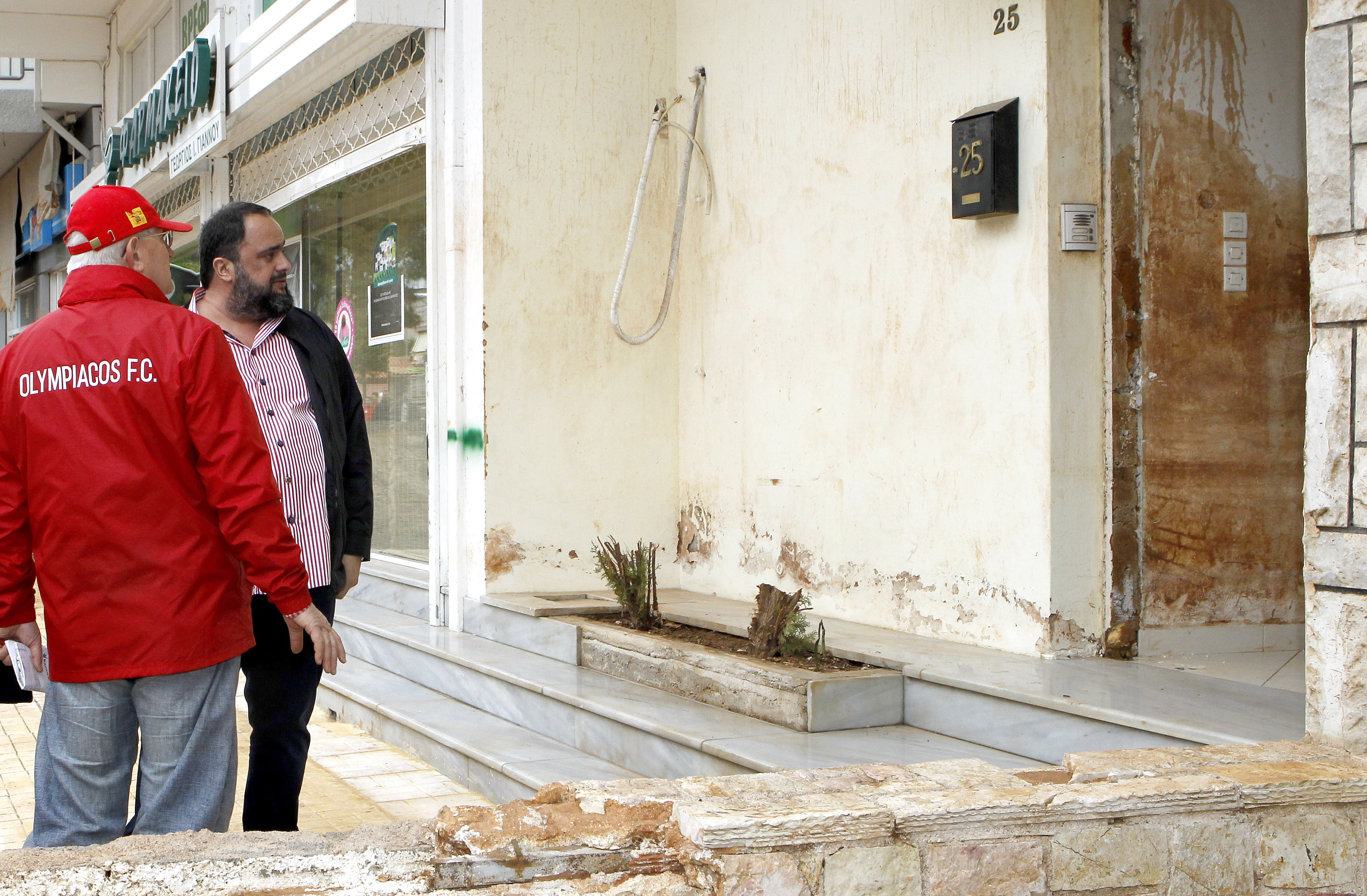 Μετά την ολιγόλεπτη συζήτηση, με τη κα. Κριεκούκη, ο κ. Βαγγέλης Μαρινάκης ζήτησε να δει από κοντά το πρόβλημα. Να περπατήσει στα στενά της Μάνδρας και να δει ο ίδιος, όχι μέσα από τις κάμερες και τους φωτογραφικούς φακούς, αλλά με τα ίδια του τα μάτια, το μέγεθος της καταστροφής. Το οποίο ακόμη και τώρα, μετά από τόσες ημέρες που έχουν περάσει, είναι τεράστιο. Συνοδευόμενος από τους συνεργάτες του, ο ηγέτης του Ολυμπιακού έκανε ακριβώς αυτό: Περπάτησε μέσα στα στενά της πόλης της Μάνδρας, σταματώντας σε σπίτια και συνομιλώντας με τον κόσμο.
