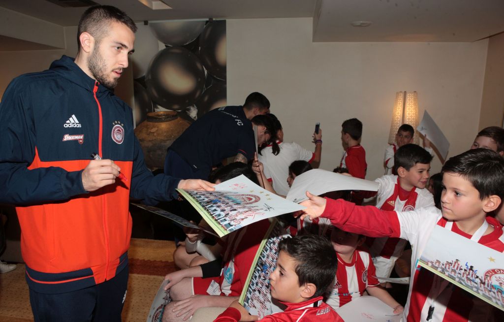 Επίσκεψη στο ξενοδοχείο όπου διαμένει η πρώτη ομάδα του Ολυμπιακού πραγματοποίησε το πρωί του Σαββάτου η Σχολή μας στο Αγρίνιο. Δεκάδες παιδιά μαζί με τους προπονητές τους και τον επικεφαλής της Σχολής κ. Θόδωρο Πανέτα είχαν την ευκαιρία να δουν από κοντά και να πάρουν δεκάδες αυτόγραφα από τα είδωλα τους.