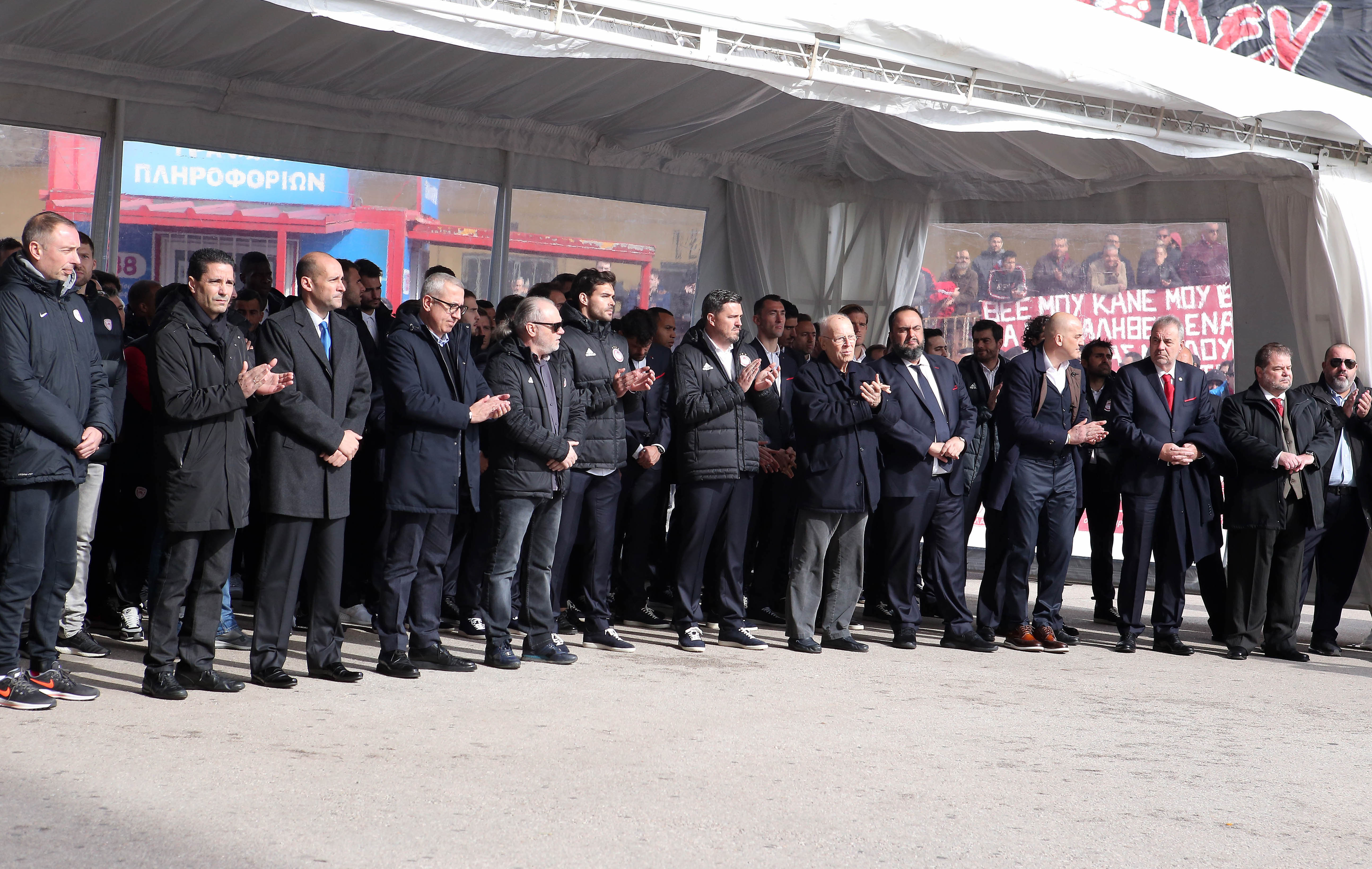 Παρόντα στην επιμνημόσυνη δέηση ήταν όλα τα αγωνιστικά τμήματα του ΟΛΥΜΠΙΑΚΟΥ. Η ποδοσφαιρική ομάδα, με πρώτο τον ηγέτη του Ολυμπιακού, κ. Βαγγέλη Μαρινάκη. Ο Αντιπρόεδρος κ. Σάββας Θεοδωρίδης, ο Αντιπρόεδρος κ. Δημήτρης Αγραφιώτης, ο κ. Μπαταγιάννης, ο Διευθύνων Σύμβουλος κ. Παύλου, σύσσωμη η Διοίκηση και στελέχη της ΠΑΕ, όλη η ομάδα, ο κ. Όσκαρ Γκαρθία με το προπονητικό επιτελείο, ο κ. Κοβάσεβιτς, ο κ. Μοδέστο, ο κ. Κώστας Καραπαπάς. Ο Αντιπρόεδρος της ΠΑΕ Ολυμπιακός και Πρόεδρος του Ερασιτέχνη Ολυμπιακού, κ. Μιχάλης Κουντούρης, ήταν εκεί και φυσικά παρόντα ήταν και όλα τα τμήματα του Ερασιτέχνη! Παρόντες και οι αθλητές του τμήματος μπάσκετ, ο προπονητής κ. Σφαιρόπουλος, με τη Διοίκηση και τον κ. Παναγιώτη Αγγελόπουλο να δίνουν επίσης το παρών. Η Ακαδημία του Ολυμπιακού ήταν επίσης εκεί! Η ομάδα Κ20 του Συλλόγου μας και Σχολές του Ολυμπιακού!