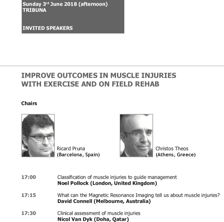 Οι δραστηριότητες του κ. Θέου, όμως, για τις προσεχείς ημέρες, δεν σταματούν εδώ. Αμέσως μετά την ολοκλήρωση του ECIS, ο γιατρός της ομάδας μας θα μεταβεί στη Βαρκελώνη. Εκεί θα λάβει χώρα ένα εξίσου σπουδαίο και σημαντικό ιατρικό συνέδριο, με τίτλο «Βελτίωση των αποτελεσμάτων στους μυϊκούς τραυματισμούς, με άσκηση και αποκατάσταση στο γήπεδο». Ο γιατρός του Ολυμπιακού, μαζί με τον ομόλογό της Μπαρτσελόνα, κ. Προύνα, προεδρεύουν στην στρογγυλή τράπεζα, επάνω στην οποία, για τρεις ημέρες, θα τεθούν σημαντικά ζητήματα πρόληψης και -κυρίως- αντιμετώπισης κακώσεων και τραυματισμών.
