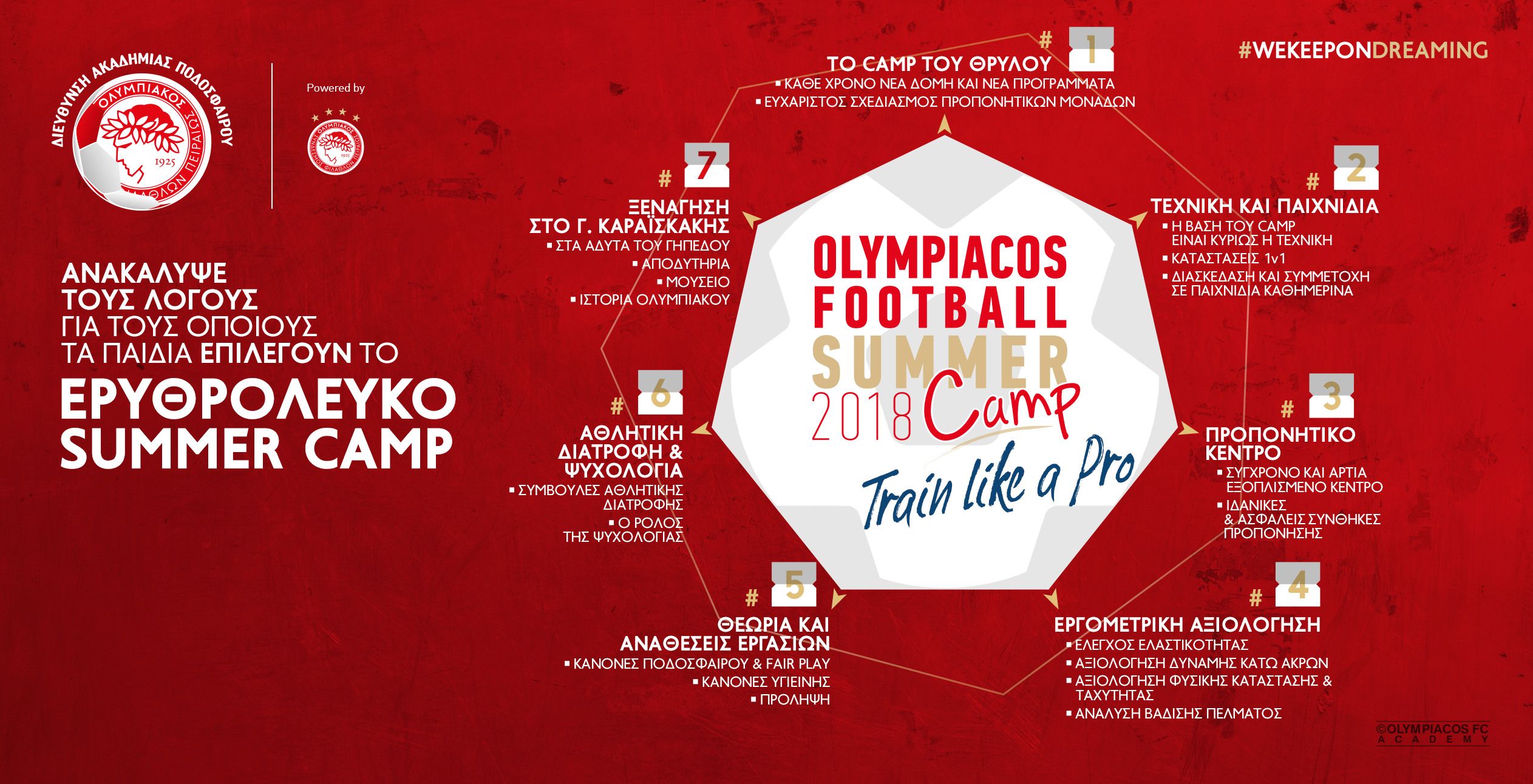 Λίγες ημέρες απέμειναν για την πρεμιέρα του 18ου Summer Camp της ΠΑΕ Ολυμπιακός και το ενδιαφέρον από παιδιά ηλικίας 5 έως 16 είναι τεράστιο.