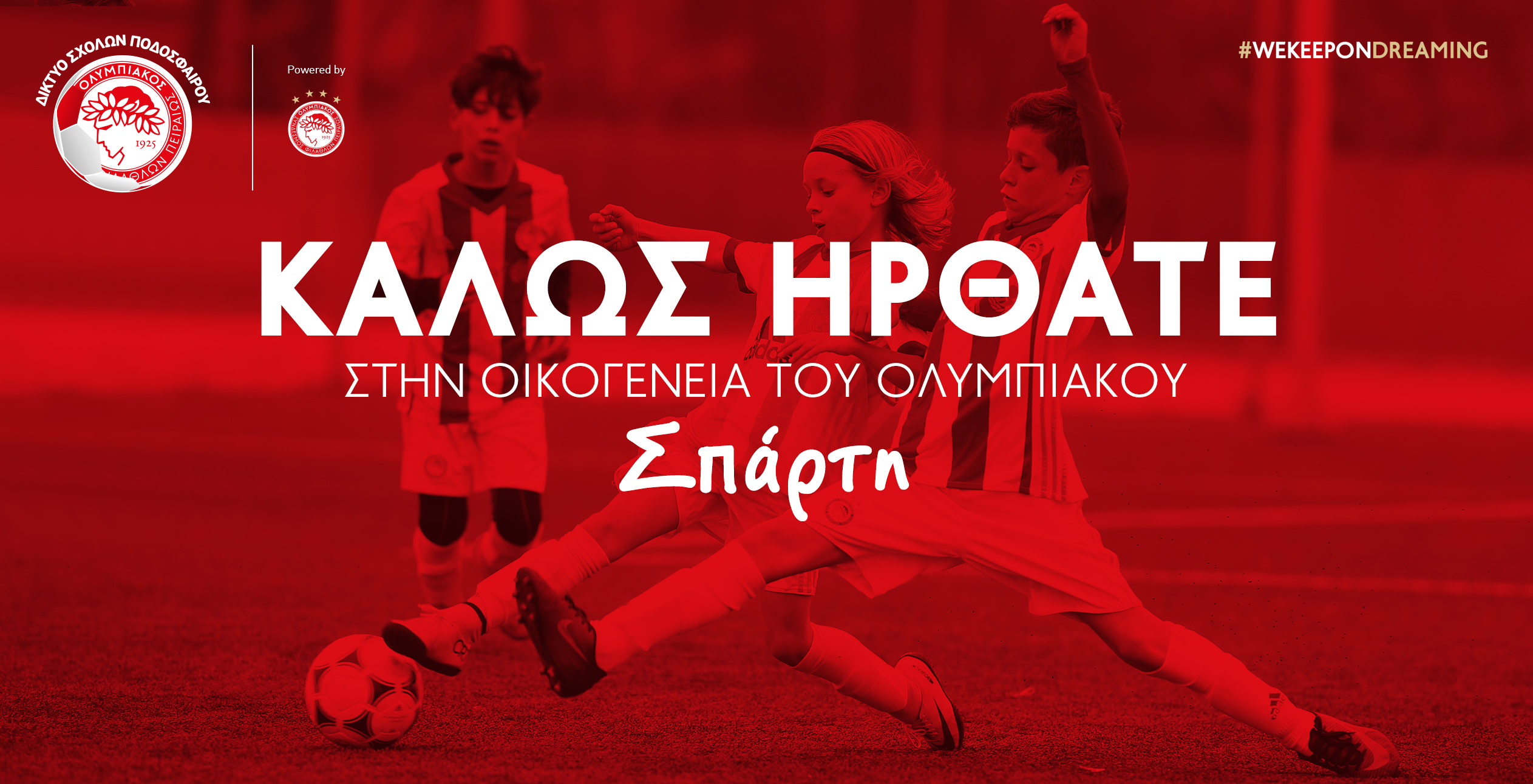 Η Διεύθυνση Ακαδημίας Ποδοσφαίρου, τηρώντας πιστά τις αρχές της για ανάπτυξη, αναβάθμιση και αξιοποίηση των τμημάτων υποδομής σε όλη τη χώρα, καλωσορίζει με ιδιαίτερη χαρά στο Δίκτυο της, την Σπάρτη, ως νέο μέλος της ευρύτερης οικογένειας του Ολυμπιακού μας.