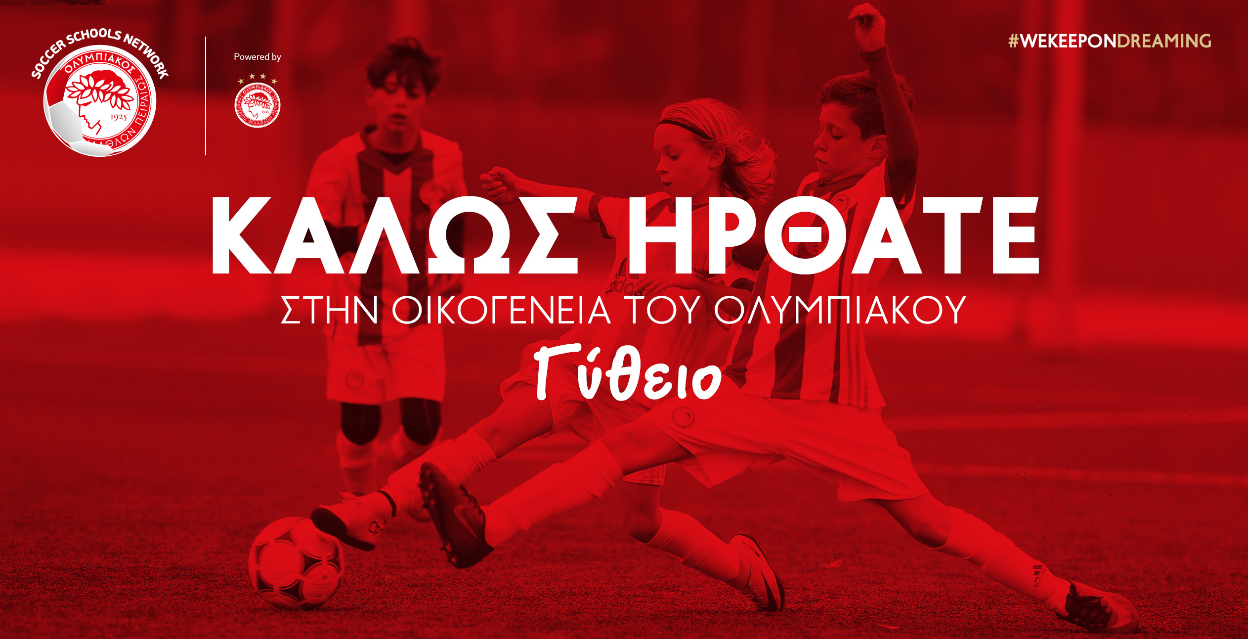 Η Διεύθυνση Ακαδημίας Ποδοσφαίρου, τηρώντας πιστά τις αρχές της για ανάπτυξη, αναβάθμιση και αξιοποίηση των τμημάτων υποδομής σε όλη τη χώρα, καλωσορίζει με ιδιαίτερη χαρά στο Δίκτυο της, το Γύθειο, ως νέο μέλος της ευρύτερης οικογένειας του Ολυμπιακού μας.