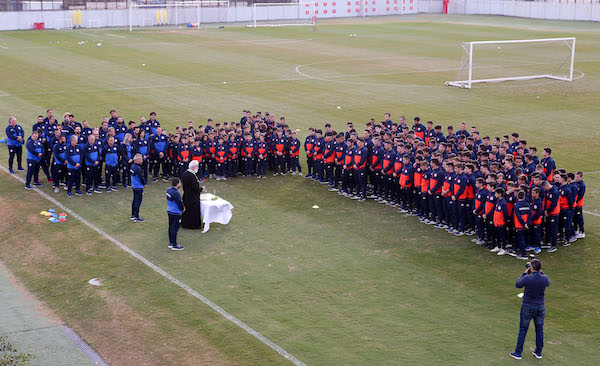 Παρόντα ήταν τα τμήματα από την Κ10 μέχρι και την ομάδα Νέων (Κ19) καθώς και η πιο σπουδαία ομάδα που τιμά την ερυθρόλευκη ριγωτή φανέλα, η ομάδα «Μαζί στη Ζωή, μαζί στον Ολυμπιακό»! Τα μικρά παιδιά άκουσα με προσήλωση τα λόγια του πατέρα Δημήτριου, ο οποίος τους ευλόγησε και τους ευχήθηκε να έχουν υγεία και να είναι καλοί αθλητές, αλλά και σωστοί άνθρωποι! Να μελετούν, να μορφώνονται, να εισπράττουν κάθε είδους γνώση, ποδοσφαιρική και μη και να δίνουν πάντοτε τον καλύτερό τους εαυτό, σε οτιδήποτε και αν κάνουν στη ζωή τους.