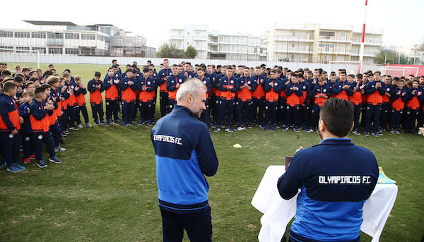Ο πατέρας Δημήτριος εξήρε το έργο που γίνεται στην Ακαδημία και την προσπάθεια που κάνει και έχει κάνει, εδώ και χρόνια, ο κ. Μαρινάκης, ο οποίος διαρκώς ανεβάζει το επίπεδο για τους μικρούς αθλητές του Ολυμπιακού, δημιουργώντας νέες εγκαταστάσεις, εκσυγχρονίζοντας τις υπάρχουσες και προσφέροντας όλες τις ανέσεις, στους νεαρούς ποδοσφαιριστές, προκειμένου να αφοσιώνονται μόνο στο ποδόσφαιρό τους και στα μαθήματά τους, στο σχολείο. Στόχος του Ολυμπιακού, άλλωστε, είναι εκτός από καλούς ποδοσφαιριστές, να παραδίδει στην κοινωνία και καλούς ανθρώπους.