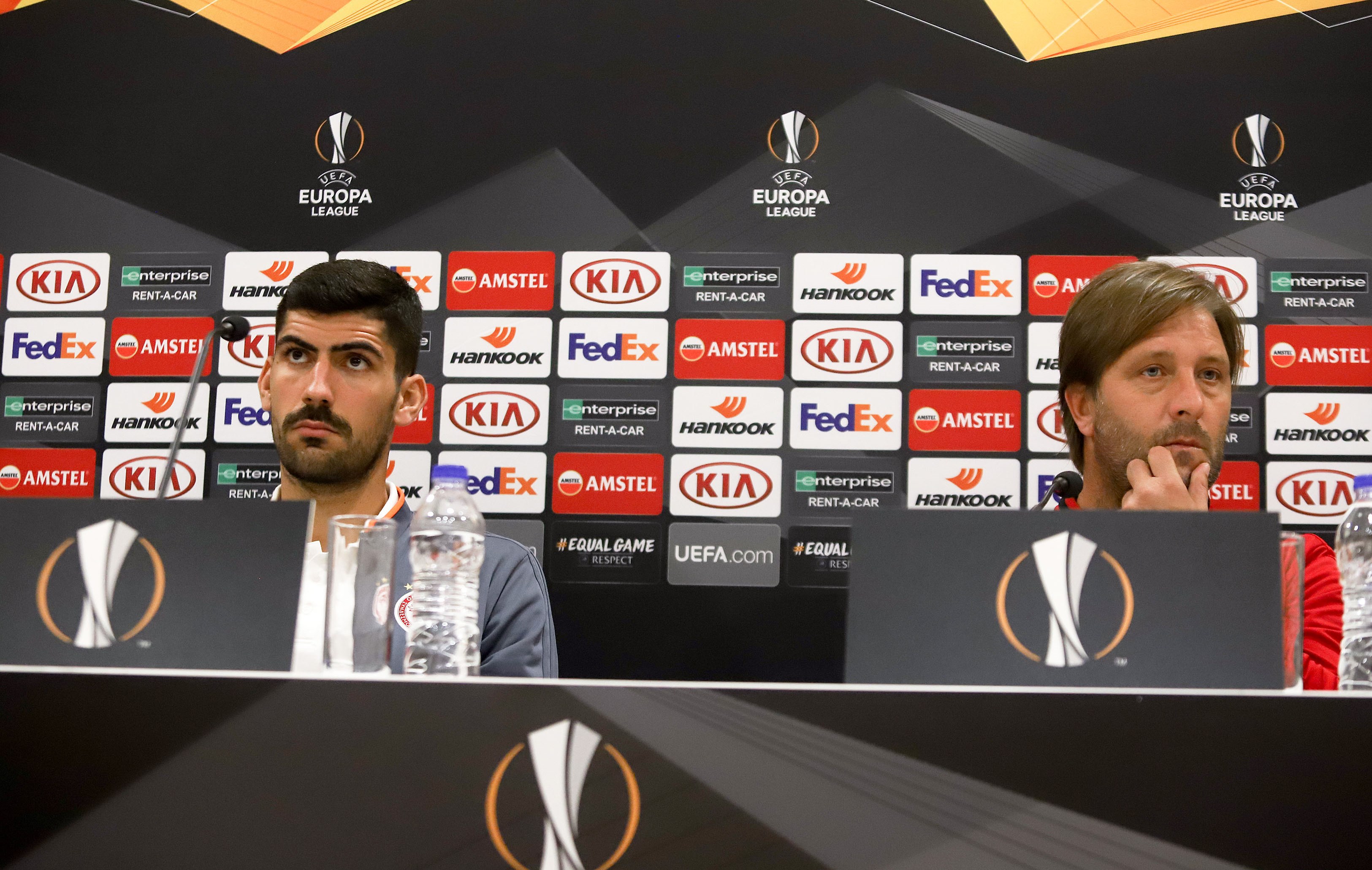 Εάν έχει διαπιστώσει αυτές τις ημέρες, κάποιους ποδοσφαιριστές του να έχουν το μυαλό τους στο ματς της Κυριακής με τον Παναθηναϊκό:«Όχι, δεν υπάρχει κανένας απολύτως που να σκέφτεται το παιχνίδι με τον Παναθηναϊκό και να είστε σίγουρος γι’ αυτό. Είμαστε όλοι συγκεντρωμένοι στο αυριανό παιχνίδι γιατί γνωρίζουμε ότι θα είναι ένα δύσκολο παιχνίδι, δεν θα είναι εύκολο, όπως και πολύ σημαντικό. Σημαντικό για τους ίδιους τους παίκτες, γιατί όλοι θέλουν να δείξουν το καλό τους αγωνιστικό πρόσωπο στην Ευρώπη, γιατί είναι πολύ σημαντικό για τον Σύλλογο μας, να εκπροσωπηθεί σε υψηλό επίπεδο στις ευρωπαϊκές διοργανώσεις. Επίσης είναι ένα παιχνίδι που δεν θα πρέπει να υποτιμήσουμε τον αντίπαλο και δεν πρέπει να γίνει κάτι τέτοιο. Να είστε σίγουροι γι’ αυτό ότι δεν θα γίνει. Είμαι πραγματικά ενθουσιασμένος από τον τρόπο που ανταποκρίνονται οι ποδοσφαιριστές, όπως και οι Ομάρ, Βούκοβιτς οι οποίοι ήθελαν μία ειδική διαχείριση αυτή την εβδομάδα, είναι όλοι ενθουσιασμένοι και γεμάτοι θέληση και ανυπομονησία για να αγωνιστούν στο αυριανό παιχνίδι».