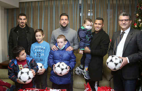 Ο Λάζαρος Χριστοδουλόπουλος, ανήμερα των γενεθλίων του, ο Ματίας Ναουέλ και ο Μιγκέλ Άνχελ Γκερέρο, καθώς και ο Διευθυντής Ε.Κ.Ε. της ΠΑΕ Ολυμπιακός, κ. Δομένικος Μασούλας, πέρασαν ώρα δίπλα στα παιδιά. Έβαλαν χαμόγελα στα γλυκά τους προσωπάκια και μοίρασαν δώρα και ελπίδα. Το πιο σημαντικό. Αυτά τα παιδιά γνωρίζουν καλά ότι δεν είναι μόνα. Ο κ. Βαγγέλης Μαρινάκης τονίζει διαρκώς την ανάγκη ο Θρύλος να επιστρέφει στον κόσμο την αγάπη που λαμβάνει. Με κάθε τρόπο. Με πράξεις, όχι με λόγια. Μία τέτοια πράξη ήταν η σημερινή. Ο Ολυμπιακός, σε ρόλο Άγιου Βασίλη, έφερε τα δώρα, τα ερυθρόλευκα δώρα, στα παιδιά που δοκιμάζονται. Και μαζί, έφερε τη χαρά!