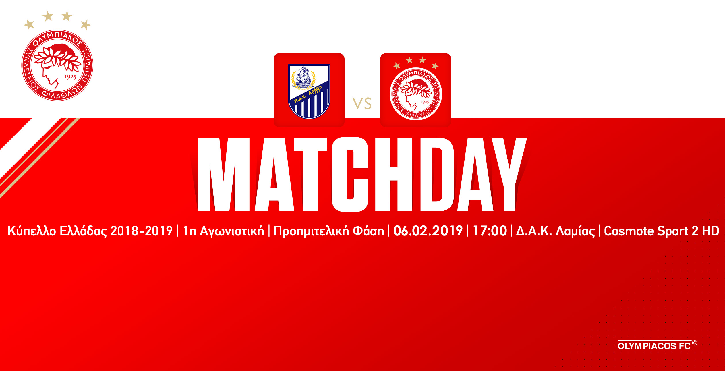 Μείνετε στο www.olympiacos.org και τα social media της ομάδας μας (Facebook, Twitter, Instagram) ώστε να διαβάσετε και να δείτε όλα όσα θα γίνουν το απόγευμα στη Λαμία.