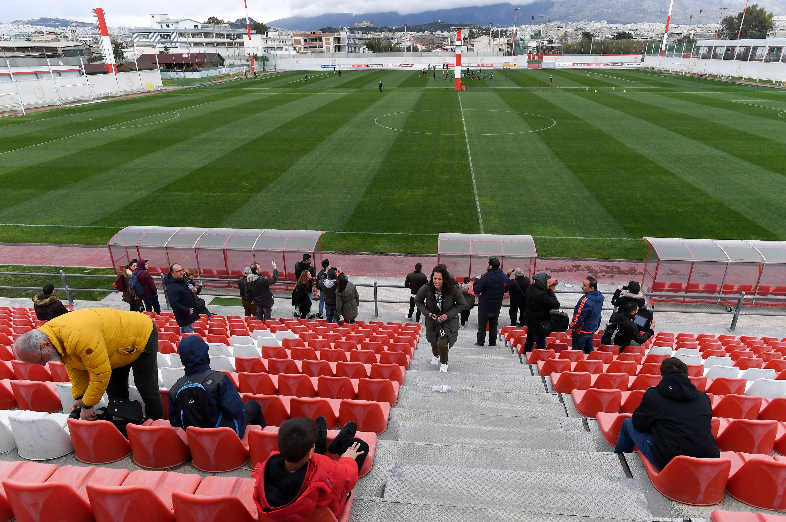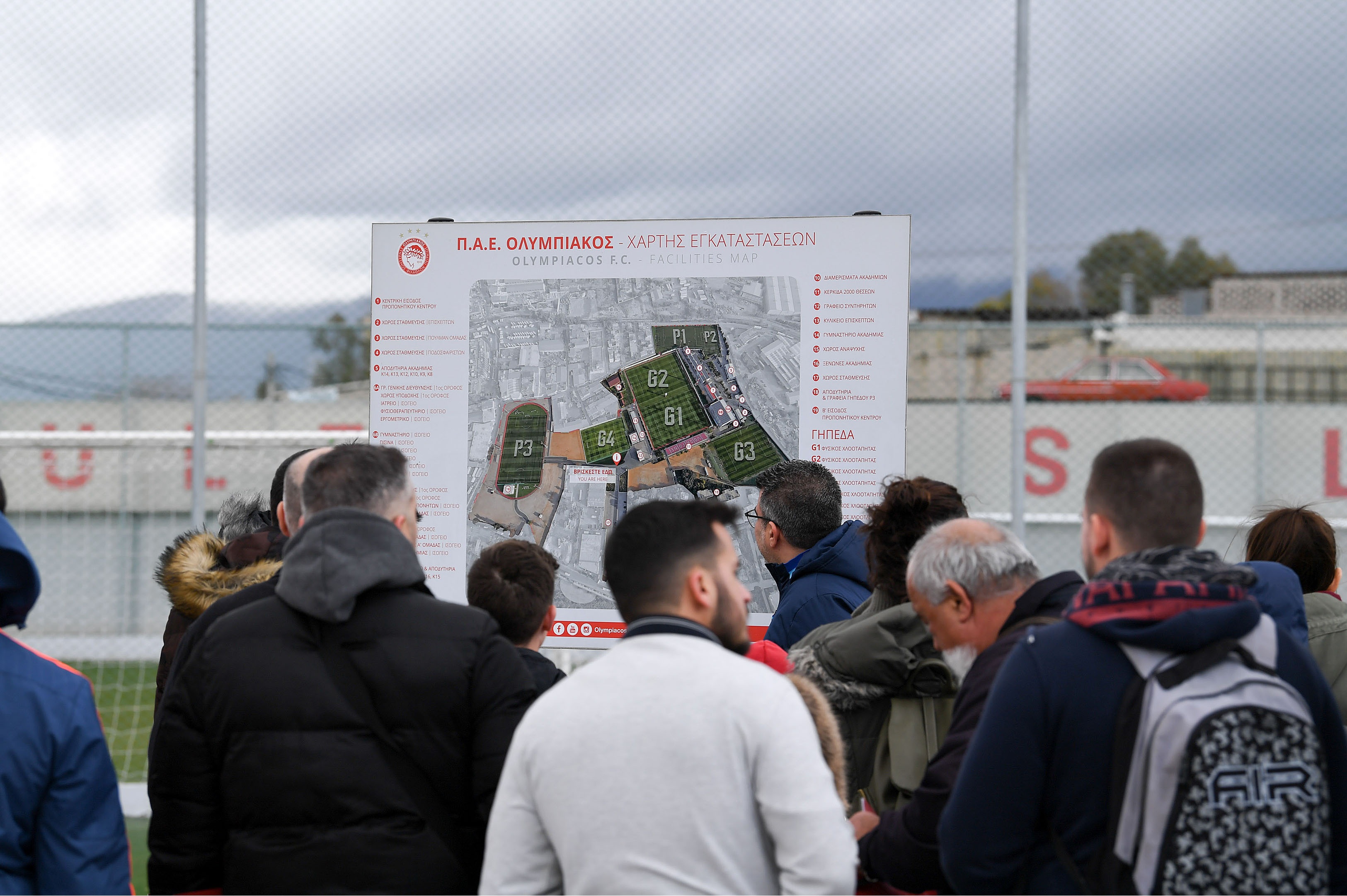 Το πρωί, το πούλμαν της ομάδας παρέλαβε τους εκπροσώπους από το parking του «Γ. Καραϊσκάκης» και τους μετέφερε στο Ρέντη. Το προσωπικό του Προπονητικού μας Κέντρου υποδέχτηκε τους συμμετέχοντες και ανέλαβε να τους ξεναγήσει στους χώρους, όπου προπονούνται οι ποδοσφαιριστές του Συλλόγου (τόσο της πρώτης ομάδας, όσο και των Ακαδημιών), αφού πριν γευμάτισαν στο εστιατόριο της ομάδας.