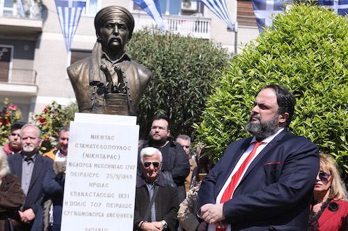Με δωρεά του ηγέτη του Ολυμπιακού και πρώτου εκλεγμένου δημοτικού συμβούλου του Πειραιά, κ. Βαγγέλη Μαρινάκη, στη μνήμη του πατέρα του Μιλτιάδη, πραγματοποιήθηκαν στο μεγάλο Λιμάνι τα αποκαλυπτήρια της προτομής του ήρωα της ελληνικής επανάστασης, Νικηταρά