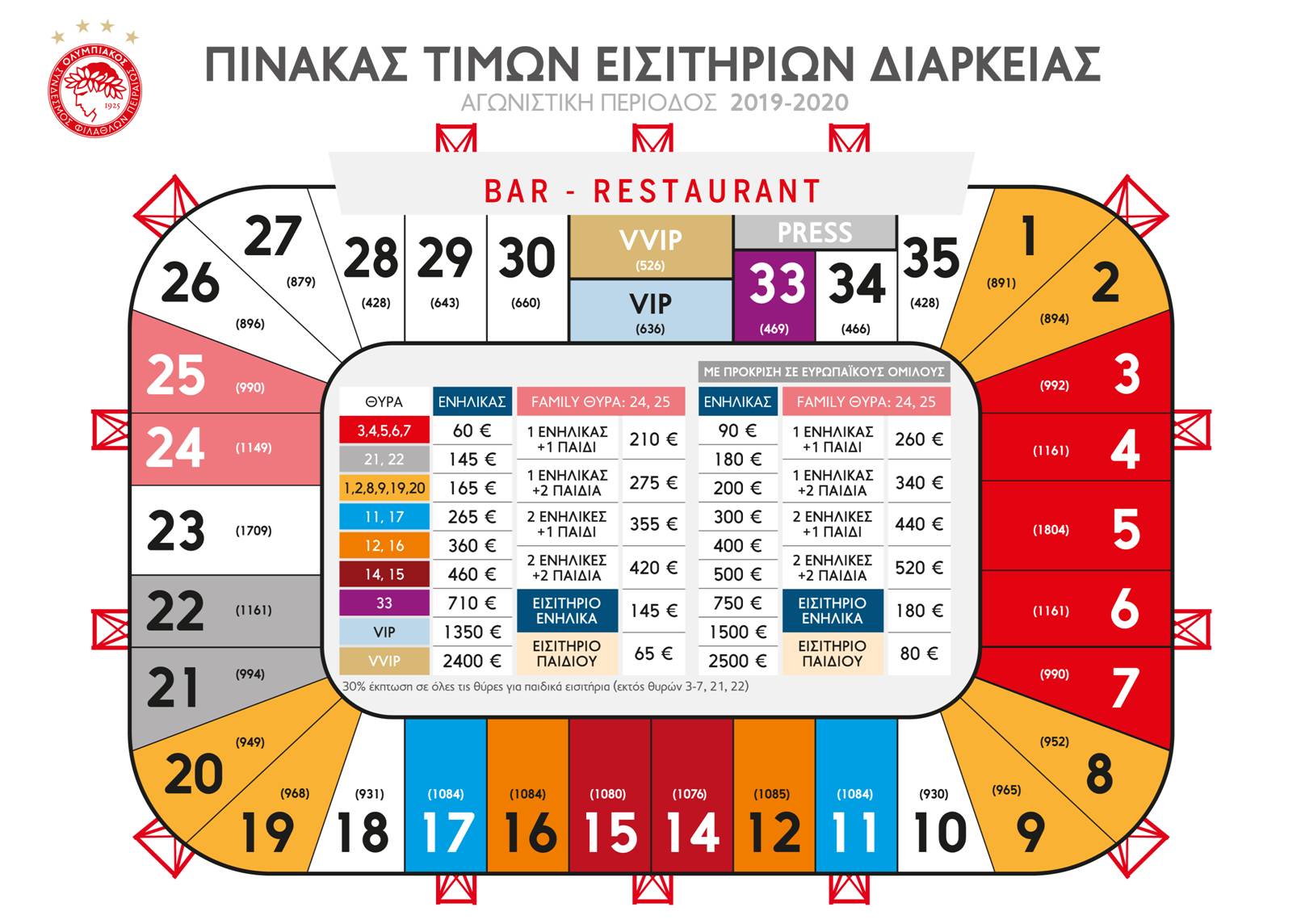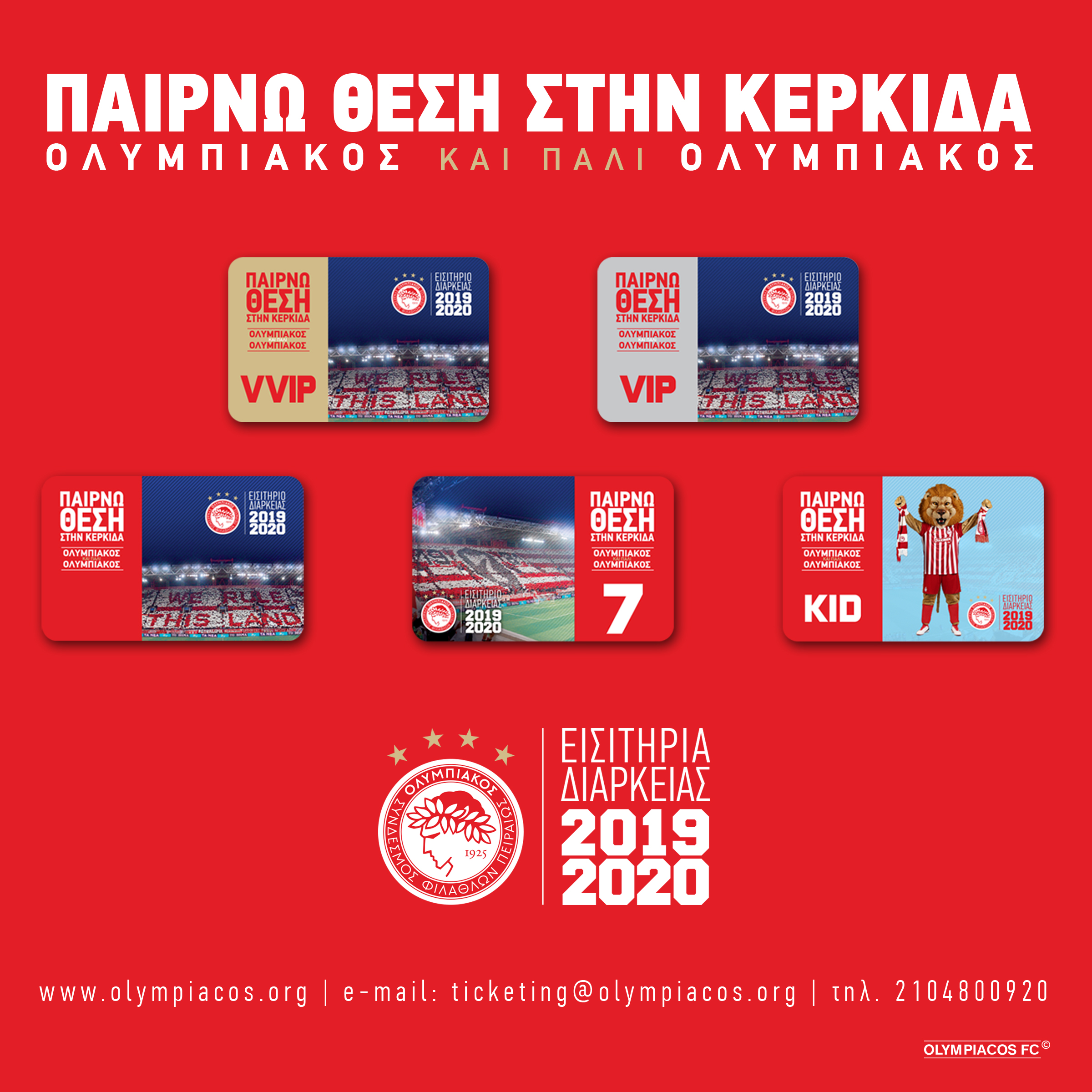 Μπορείτε να δείτε αναλυτικά την παρουσίαση των εισιτηρίων διαρκείας της σεζόν 2019-20, με όλα τα προνόμια, όλες τις τιμές ανά θύρα, τις περιόδους ανανεώσεων και έκδοσης νέων διαρκείας, για ενήλικες ή παιδιά, πατώντας ΕΔΩ.