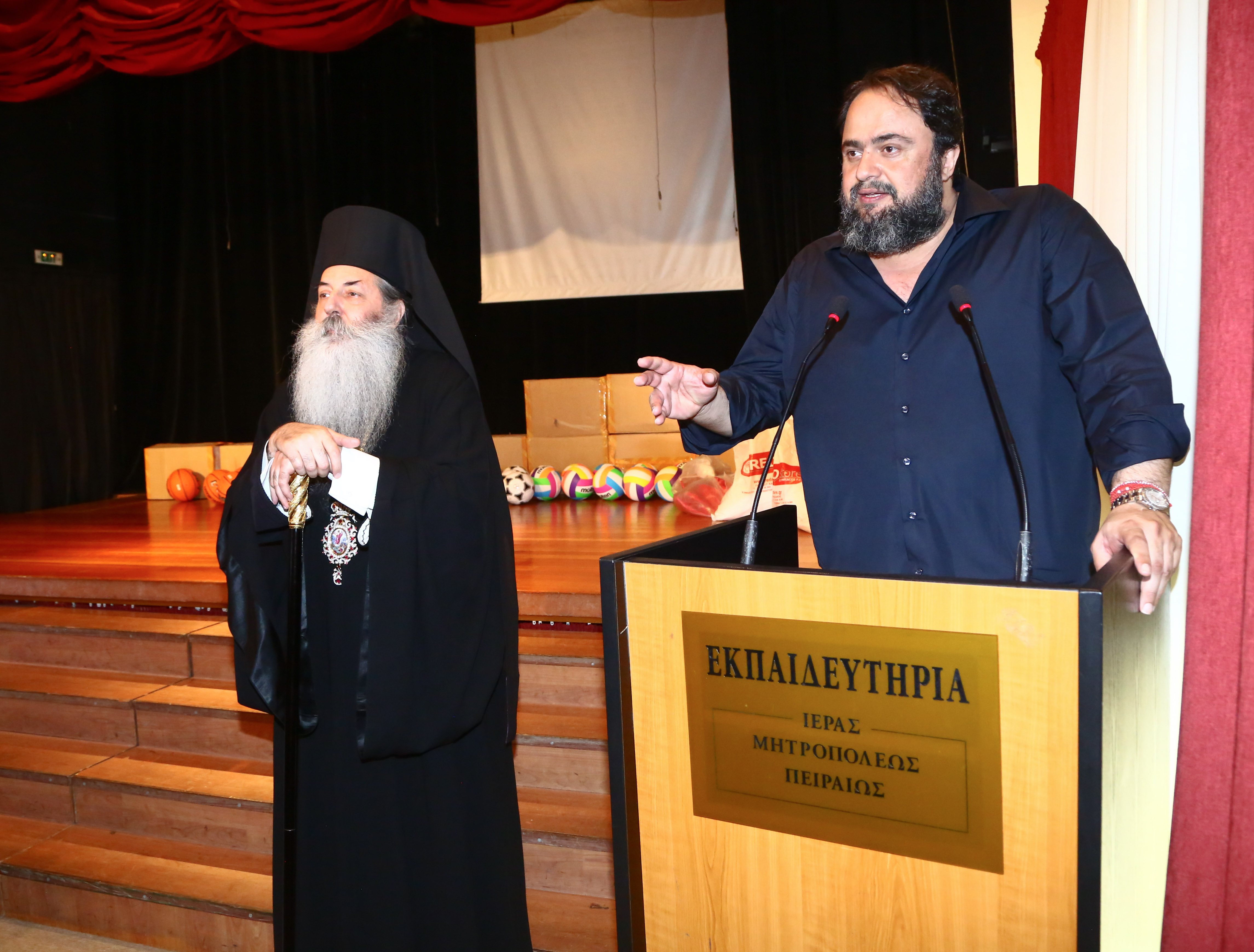 Λίγες μέρες μετά τη βράβευσή του στο Βεάκειο Θέατρο για την προσφορά και το έργο του στην Ιερά Μητρόπολη, βρέθηκε στο εκπαιδευτικό συγκρότημα που αποτελεί δωρεά στη μνήμη του πατέρα του, Μιλτιάδη Μαρινάκη. Εκεί τον υποδέχθηκε ο Σεβασμιότατος Μητροπολίτης Πειραιώς και Φαλήρου κ.κ. Σεραφείμ και τον ξενάγησε στους χώρους του συγκροτήματος, όπου λειτουργούν νηπιαγωγείο, δημοτικό, γυμνάσιο και λύκειο.