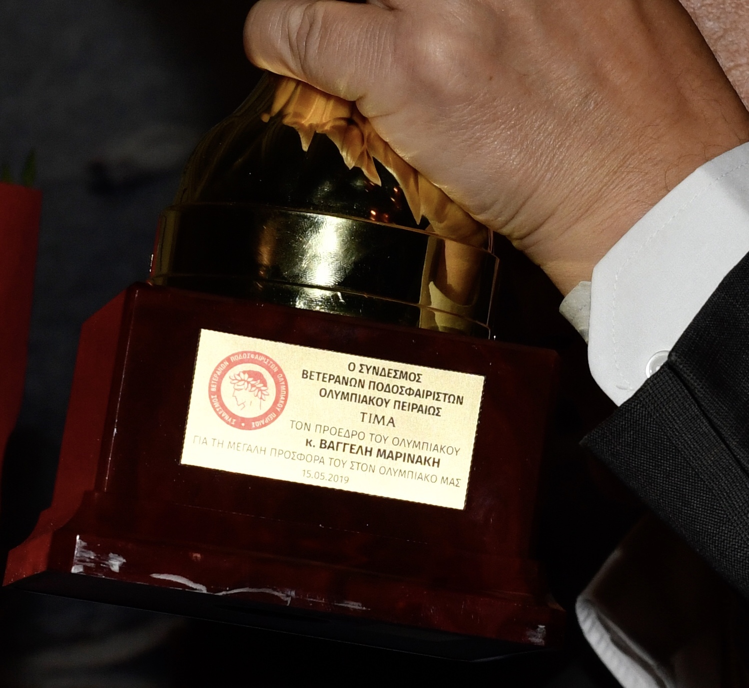 Λίγο αργότερα ο κ. Μαρινάκης έφτασε στο παραδοσιακό «Βαγγ-Ειρ» και όλοι οι παρευρισκόμενοι ξέσπασαν σε χειροκροτήματα για τον ηγέτη του Θρύλου μας, ενώ τον συνόδευε και ο θρυλικός ύμνος του Συλλόγου. Την εκδήλωση προλόγισε ο Γενικός Γραμματέας του Συνδέσμου Βετεράνων, κ. Αντώνης Γλύκας, ο οποίος καλωσόρισε όλους τους καλεσμένους, στην ιδιαίτερη αυτή βραδιά για την οικογένεια του Ολυμπιακού. Βεβαίως, η συγκίνηση κορυφώθηκε όταν πήρε το λόγο ο θρύλος, Γιώργος Δαρίβας, Πρόεδρος των Βετεράνων, ο οποίος τόνισε την στήριξη όλων στον Βαγγέλη Μαρινάκη και βροντοφώναξε: «Στην υγειά του αιώνιου ηγέτη μας που έφερε στον Ολυμπιακό την σιγουριά. Κάτι που δεν έχουν οι άλλες ομάδες. Εφόσον υπάρχει Μαρινάκης, να έχετε υπόψη σας, ότι θα είμαστε πάντα ενωμένοι!». Εν συνεχεία, ο Σύνδεσμος Βετεράνων παρέδωσε κύπελλο προσφοράς στον κ. Βαγγέλη Μαρινάκη και στο Δήμαρχο, κ. Γιάννη Μώραλη.