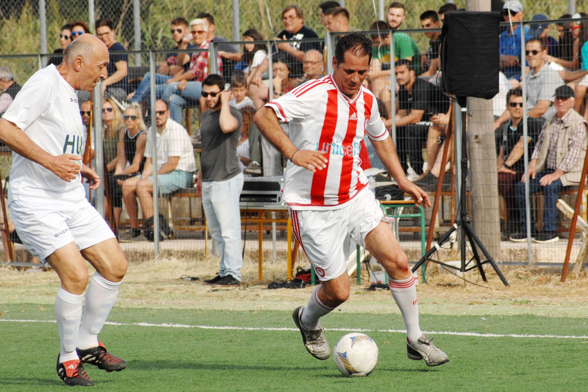 Συγκίνηση. Αυτό ήταν το συναίσθημα που επικρατούσε στον ξεχωριστό αγώνα που έδωσαν οι Βετεράνοι του Ολυμπιακού το απόγευμα του Σαββάτου (18/5), στο γήπεδο της Αγίας Μαρίνας στη Νέα Μάκρη. Ένα ματς που πραγματοποιήθηκε για ιερό σκοπό, αφού τα έσοδα θα διατεθούν για την ενίσχυση των εγκαυματιών στο Μάτι Αττικής, οι οποίοι δεν είναι σε θέση να εργαστούν. Μία ακόμα εξαιρετική πρωτοβουλία στην οποία συμμετείχαν οι θρύλοι του Θρύλου.