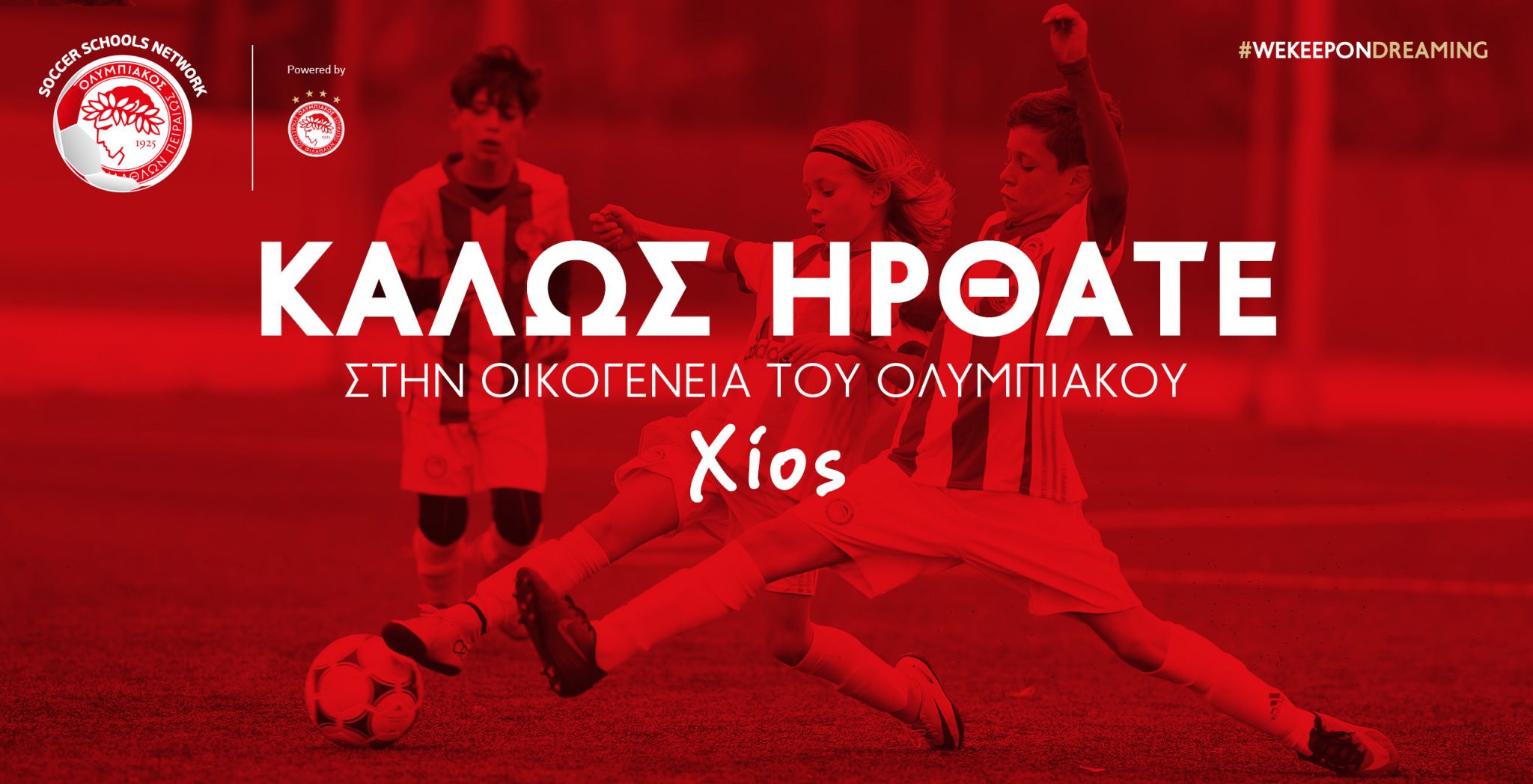 Η Διεύθυνση Ακαδημίας Ποδοσφαίρου, τηρώντας πιστά τις αρχές της για ανάπτυξη, αναβάθμιση και αξιοποίηση των τμημάτων υποδομής σε όλη τη χώρα, καλωσορίζει με ιδιαίτερη χαρά στο Δίκτυο της, την Χίο, ως νέο μέλος της ευρύτερης οικογένειας του Ολυμπιακού μας. Η συνεργασία πραγματοποιείται σε επίπεδο σχολών ποδοσφαίρου με το σωματείο Π.Α.Σ ΚΛΑΣΣΙΚΟ & ΜΙΝΙ ΧΙΟΥ.
