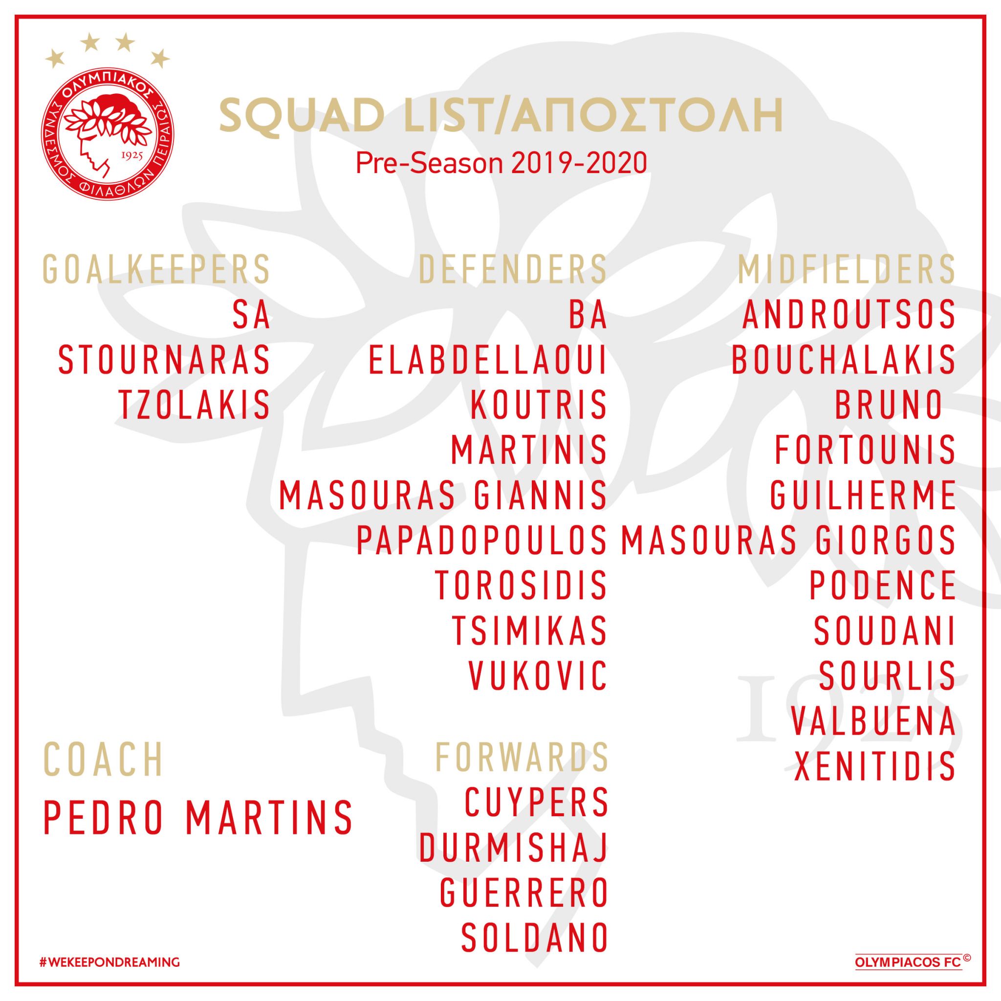 Αναλυτικά η αποστολή του ΟΛΥΜΠΙΑΚΟY για το βασικό στάδιο της προετοιμασίας: