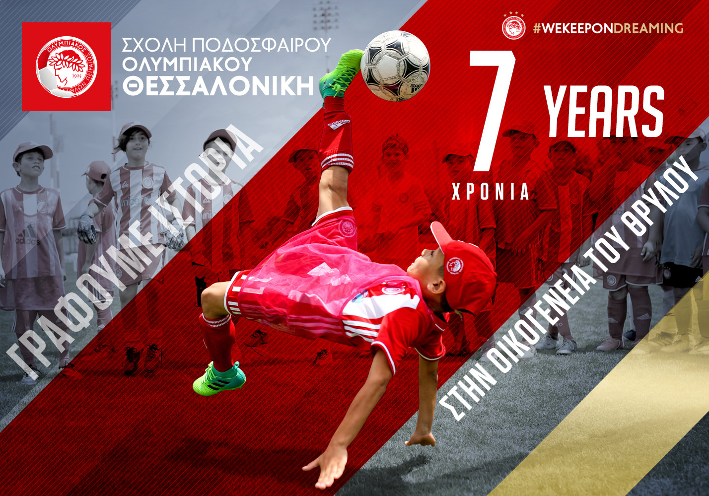 Με περισσότερα από 120 παιδιά, συνεχείς συμμετοχές σε τουρνουά ακόμα και εκτός πόλης, και τέσσερα πρωταθλήματα ΕΠΣ στα έξι πρώτα χρόνια λειτουργίας της, η Σχολή της Θεσσαλονίκης αποτελεί σπουδαίο κομμάτι του δικτύου της ΟΛΥΜΠΙΑΚΗΣ οικογένειας.