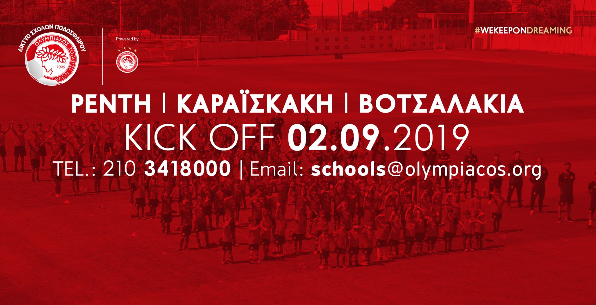 Τη Δευτέρα 2 Σεπτεμβρίου, η μπάλα στήνεται στη σέντρα και η δράση ξεκινάει για τους μικρούς φίλους των «ερυθρολεύκων» σε Ρέντη, Καραϊσκάκη και Βοτσαλάκια, με τις τρεις παραπάνω Σχολές, να αποτελούν κάθε χρόνο την επιλογή 500 και πλέον παιδιών.