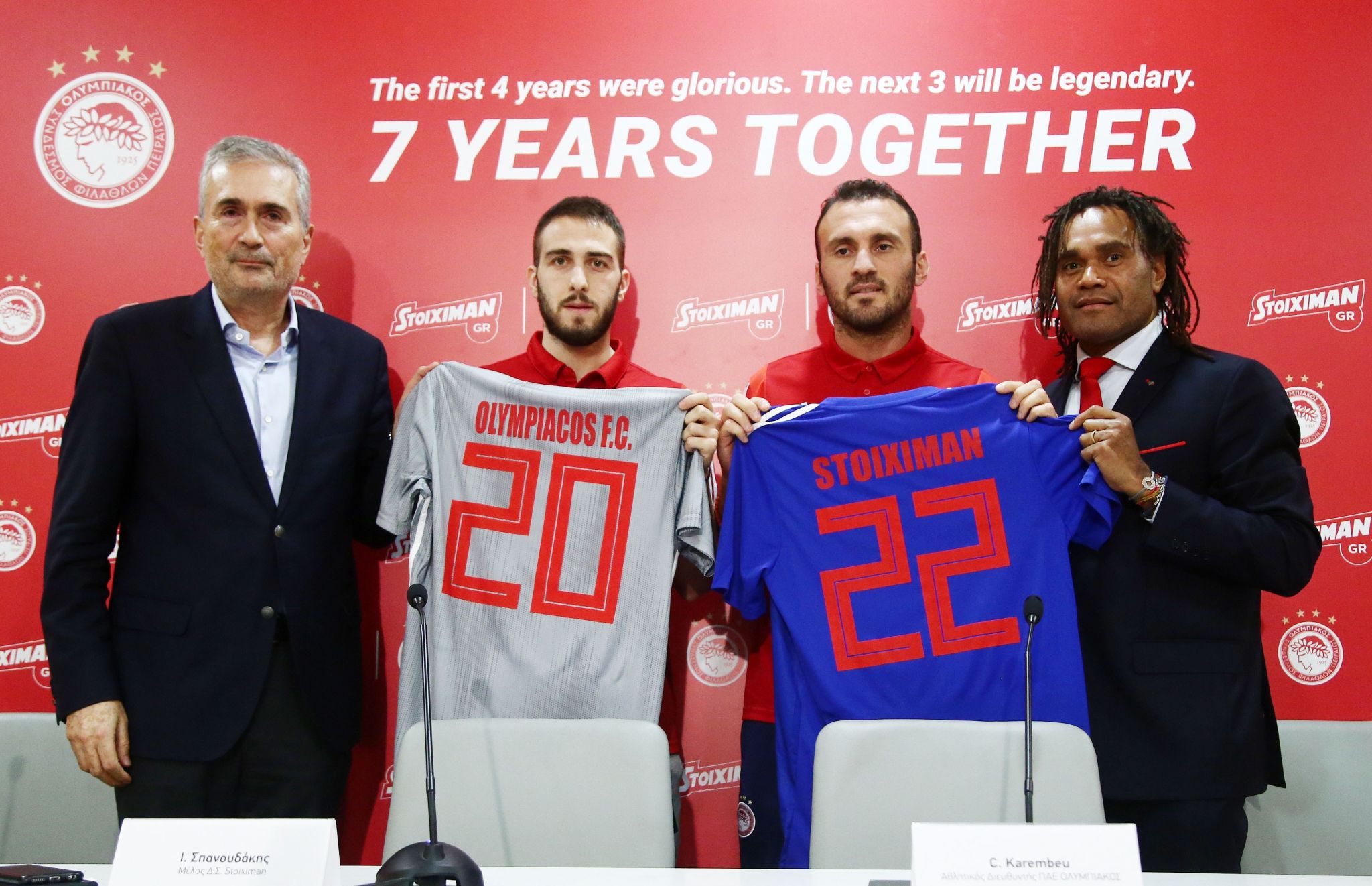 Κατά τη διάρκεια της συνέντευξης Τύπου στο «Γεώργιος Καραϊσκάκης», ο Κριστιάν Καρεμπέ, Αθλητικός Διευθυντής της ΠΑΕ ΟΛΥΜΠΙΑΚΟΣ, υπογράμμισε: «Είμαστε ιδιαίτερα ευτυχείς που η Stoiximan θα βρίσκεται για ακόμη τρία χρόνια στη μεγάλη οικογένεια του ΟΛΥΜΠΙΑΚΟΥ. Ήδη, εδώ και τέσσερα χρόνια έχουμε δημιουργήσει μια σχέση εμπιστοσύνης και συμπόρευσης, ενώ το δέσιμο μεταξύ των δύο οργανισμών είναι πολύ δυνατό. Είμαστε χαρούμενοι που συνεργαζόμαστε με μια εταιρεία που επενδύει σημαντικά στον ελληνικό Αθλητισμό και μέσω αυτού στην ελληνική κοινωνία. Επιπλέον, είμαστε υπερήφανοι που συμπορευόμαστε σε ένα πλαίσιο προσφοράς και δράσεων κοινωνικής υπευθυνότητας».