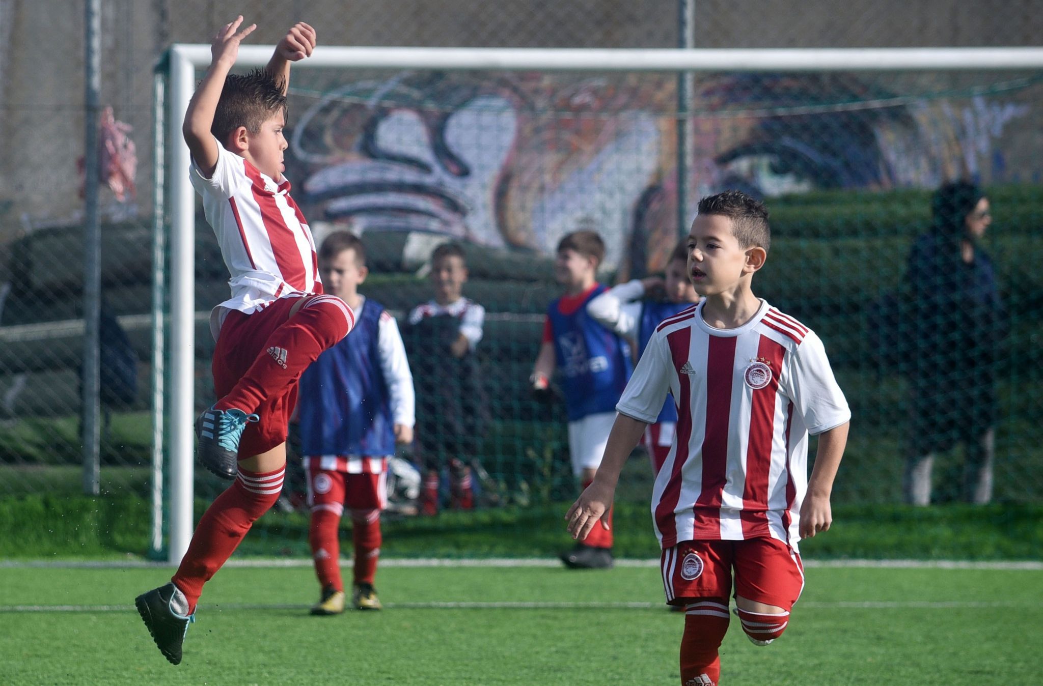 Οι Σχολές Ρέντης, Γλυκά Νερά, Μέγαρα, Μενίδι, Πεντέλη, Αιγάλεω, Σαλαμίνα, Ταύρος, Άλιμος, Βούλα, Γλυφάδα και Ηλιούπολη, κάθε Σαββατοκύριακο αγωνίζονται με την ερυθρόλευκη φανέλα και όλοι οι μικροί μας ποδοσφαιριστές διασκεδάζουν, κάνουν καινούριους φίλους, αποκτούν Ολυμπιακές εμπειρίες!
