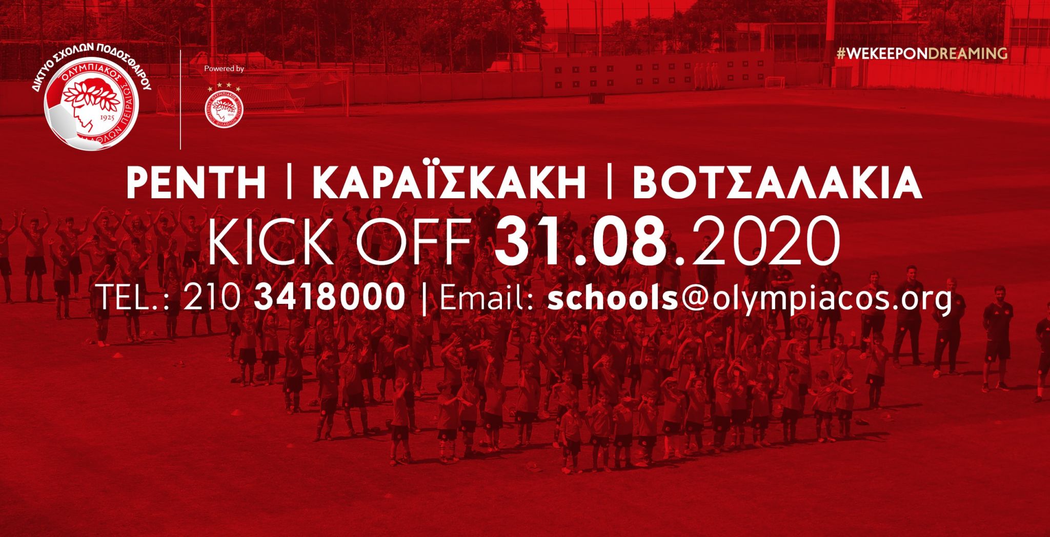 Για πληροφορίες και εγγραφές επικοινωνήστε στο τηλέφωνο: 210-3418000 και στο email: schools@olympiacos.org