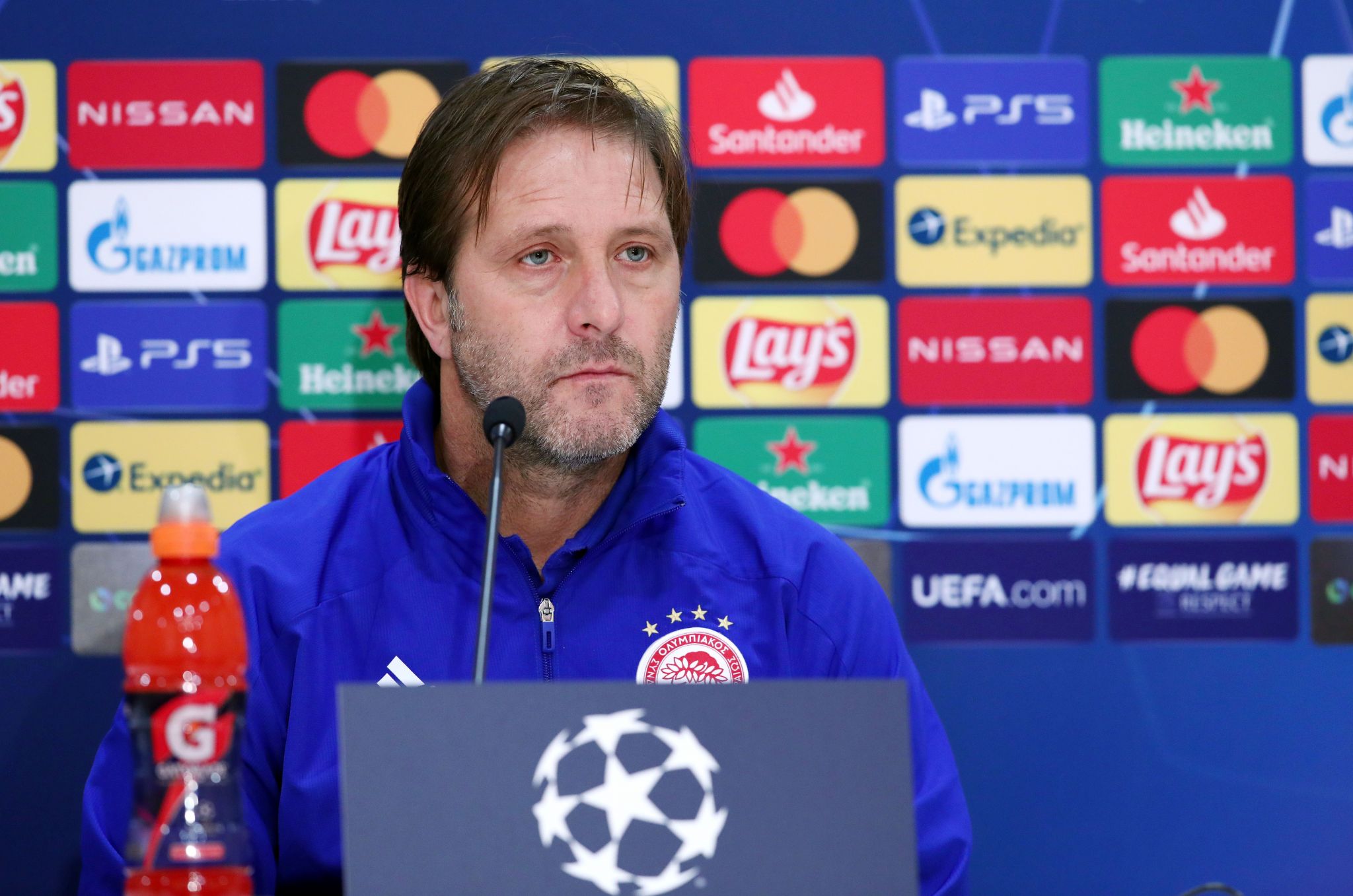 Για το τι έλειψε από τον Ολυμπιακό στο πρώτο ματς και τι χρειάζεται στο δεύτερο: «Νομίζω ότι δεν ήμασταν αρκετά αποτελεσματικοί στις ευκαιρίες με την Πόρτο. Εάν ήμασταν θα είχαμε βάλει γκολ και θα είχαμε πάρει βαθμούς. Επίσης με τη Σίτι, που είναι μία κορυφαία ομάδα νομίζουμε πως κάναμε ένα πολύ καλό ημίχρονο και είχαμε κάτι να διεκδικήσουμε. Έχουμε ακόμα ελπίδες και συνεχίζουμε να πιστεύουμε στην πρόκριση. Από αύριο ξαναρχίζουμε την προσπάθεια της πρόκρισης. Να στερήσουμε την κατοχή από τη Σίτι. Έχουμε πράγματα υπέρ μας όπως ότι παίζουμε στο Καραϊσκάκη και πάντα εντός έδρας είμαστε πιο δυνατοί. Για να προκριθούμε θα χρειαστούμε μίνιμουμ δύο νίκες. Δύο νίκες στα επόμενα ματς. Στα ματς που απομένουν».