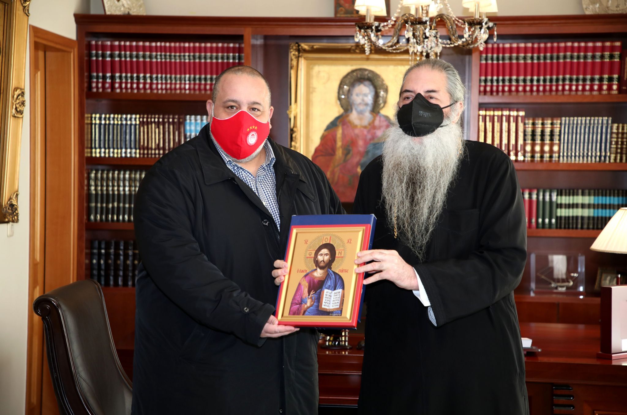 Με πρωτοβουλία του ηγέτη του Ολυμπιακού, κ. Βαγγέλη Μαρινάκη, ο Αντιπρόεδρος της ΠΑΕ, κ. Κώστας Καραπαπάς παρέδωσε την Παρασκευή 18/12 στον Σεβασμιότατο Μητροπολίτη Πειραιώς κ.κ. Σεραφείμ, επιταγή προκειμένου να συνεχιστεί και να αναπτυχθεί περαιτέρω το φιλανθρωπικό έργο της Μητρόπολης.