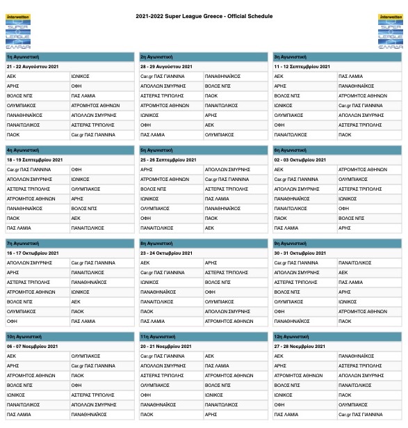 Αναλυτικά όλο το πρόγραμμα της σεζόν 2021-2022
