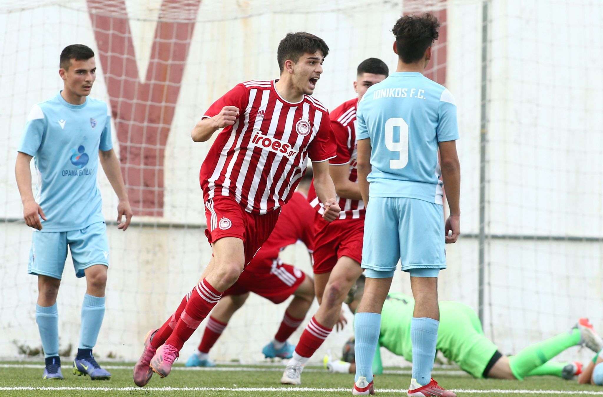 Ο Ιωνικός προηγήθηκε στο 26’ αλλά οι «ερυθρόλευκοι» ισοφάρισαν στο 37’ με κεφαλιά του Φίλου μετά από κόρνερ του Μαυρόπουλου. Η ανατροπή ολοκληρώθηκε με πανομοιότυπο τρόπο για τον Ολυμπιακό αφού στο δεύτερο λεπτό των καθυστερήσεων ο Κωστούλας σηκώθηκε πιο ψηλά και με το κεφάλι έστειλε την μπάλα στα δίχτυα μετά την εκτέλεση κόρνερ του Μουζακίτη.